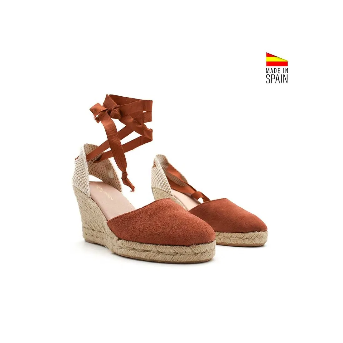 Espardeña Mujer en color teja, fabricadas en piel serraje suave y listas para destacar entre tus looks favoritos del verano.