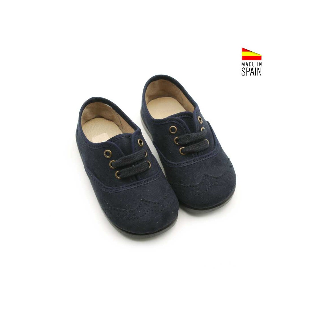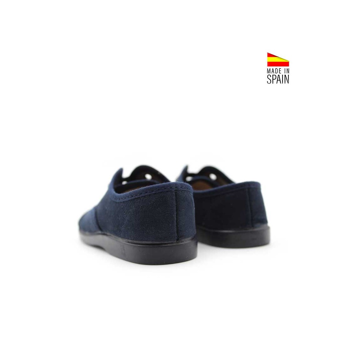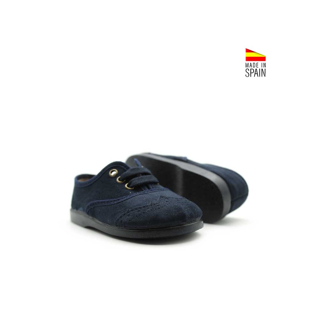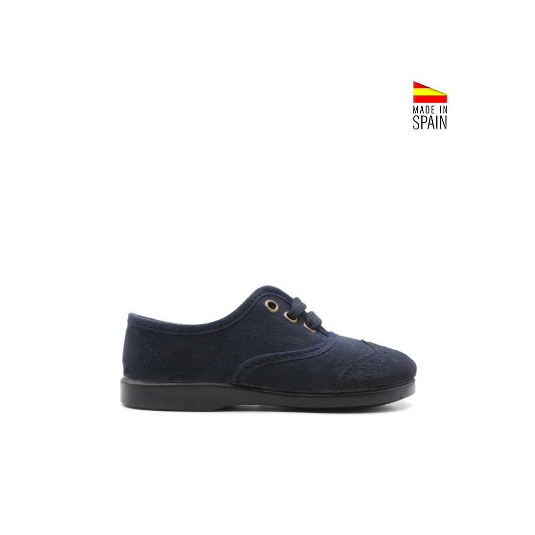La suela de goma flexible permite un movimiento natural, con buena tracción para acompañar los pasos más activos. Los cordones a juego en azul marino rematan el diseño con un toque tradicional y pulido.