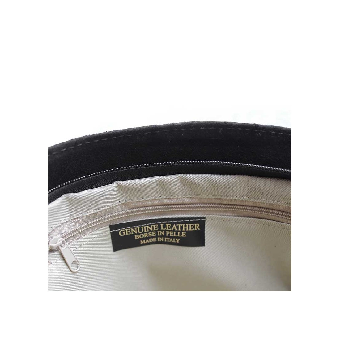 Confeccionado en piel serraje de alta calidad, su diseño destaca por los flecos largos en la parte frontal y las tachuelas doradas redondas que crean un contraste elegante y atrevido.