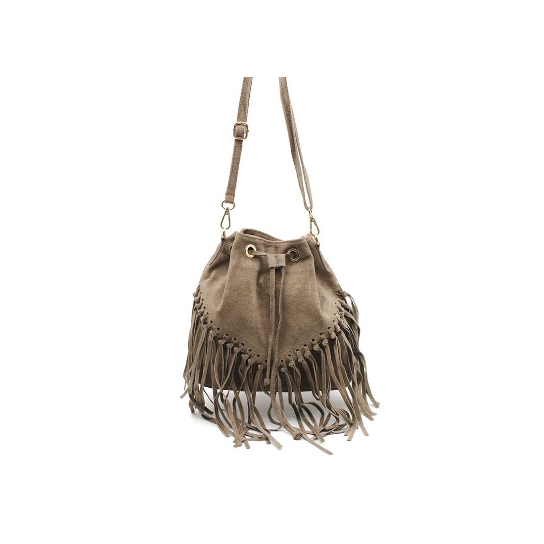 El Bolso Piel Flecos es un accesorio lleno de estilo que mezcla la naturalidad del serraje con un diseño bohemio muy actual.