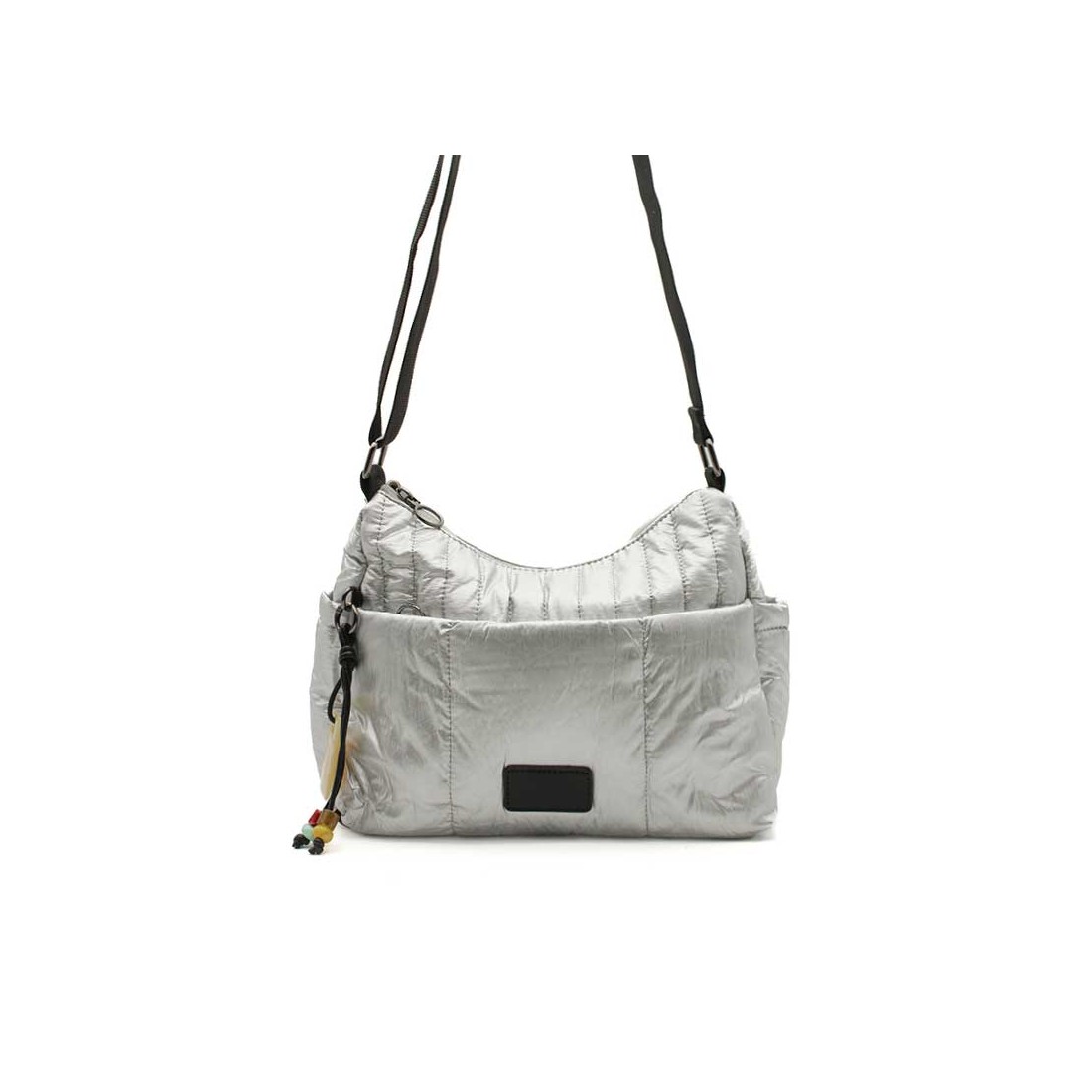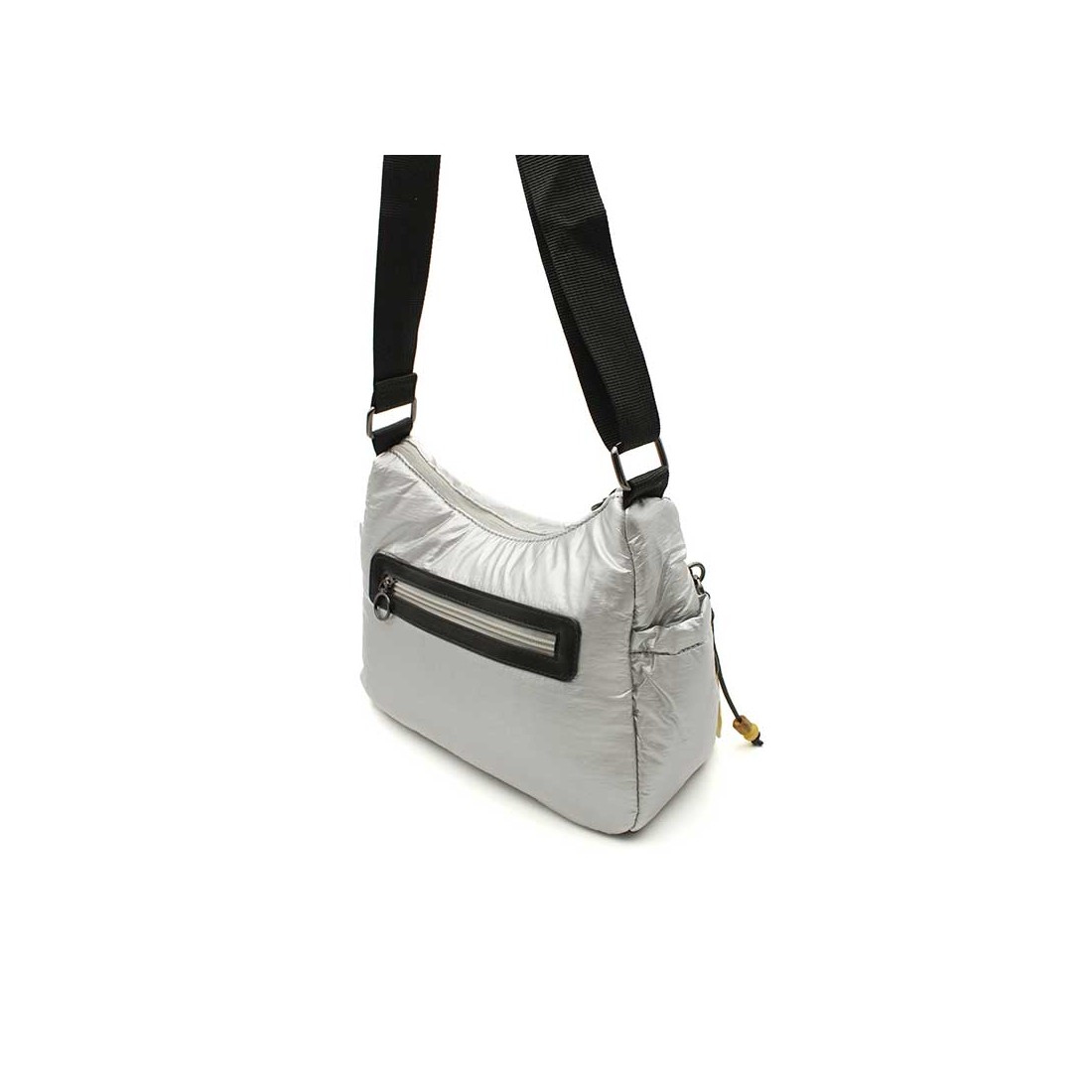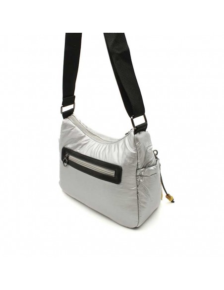 El Bolso Bandolera Acolchado en color plata es el complemento que une estilo moderno y practicidad.