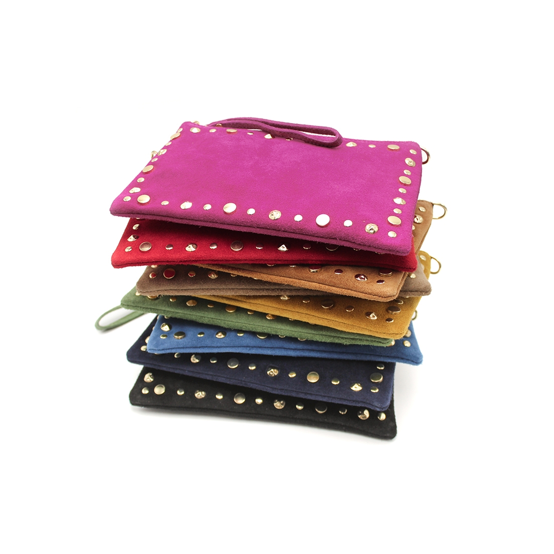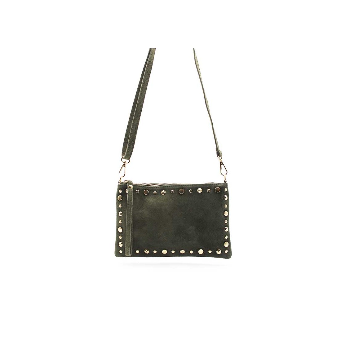 - Tipo: Bolso de serraje con tachuelas