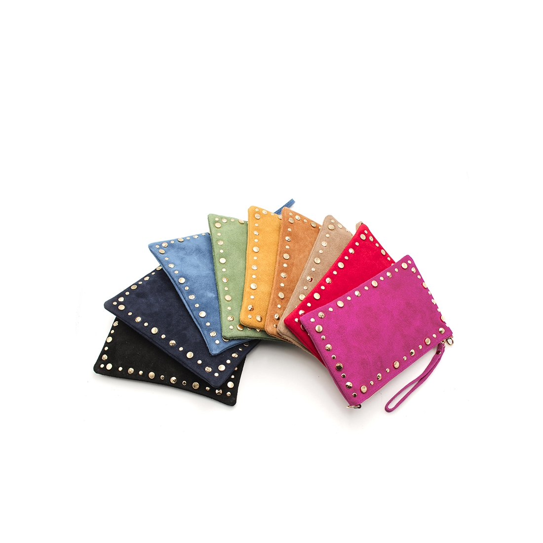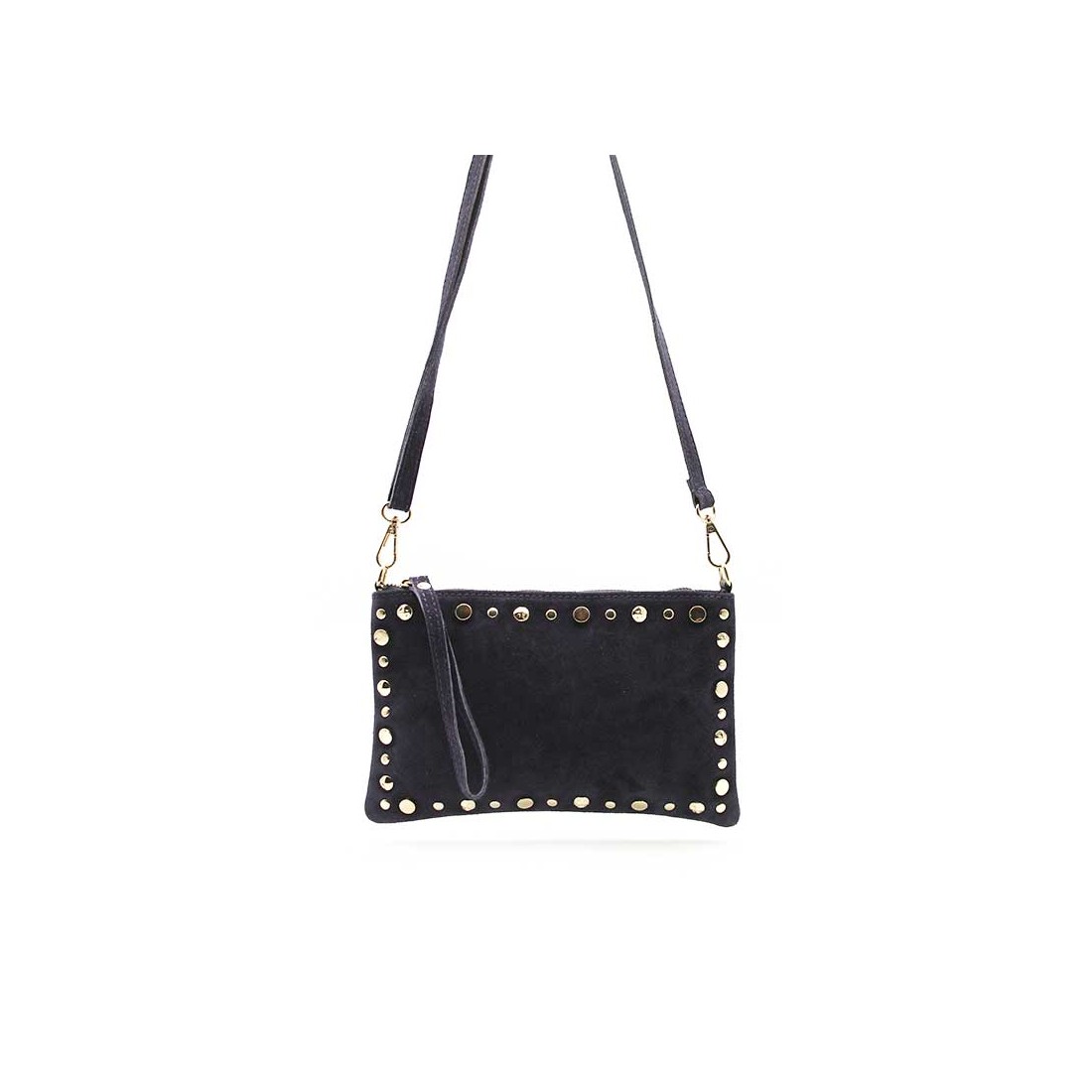 Su tacto suave y su diseño con tachuelas doradas elevan cualquier look, aportando un aire moderno sin perder elegancia.