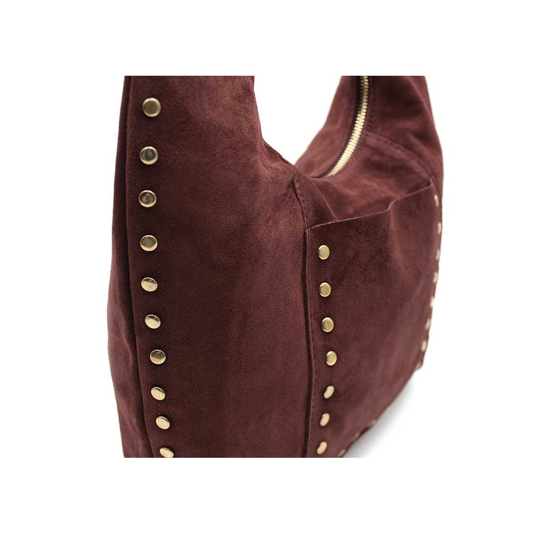 - Tipo: Bolso de hombro de serraje con tachuelas.