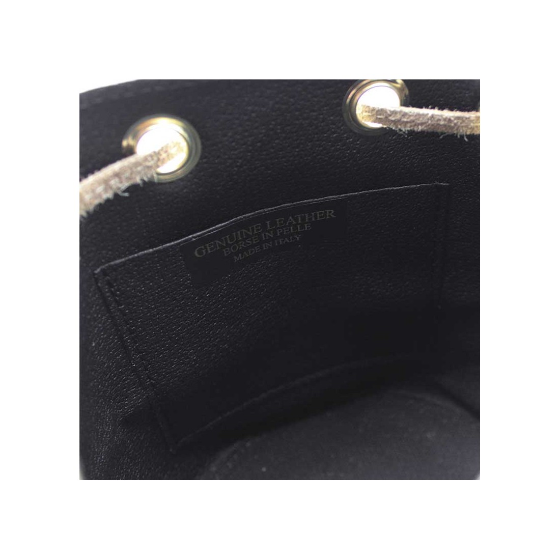 - Exterior: Piel serraje de alta calidad con tachuelas doradas y herrajes metálicos.