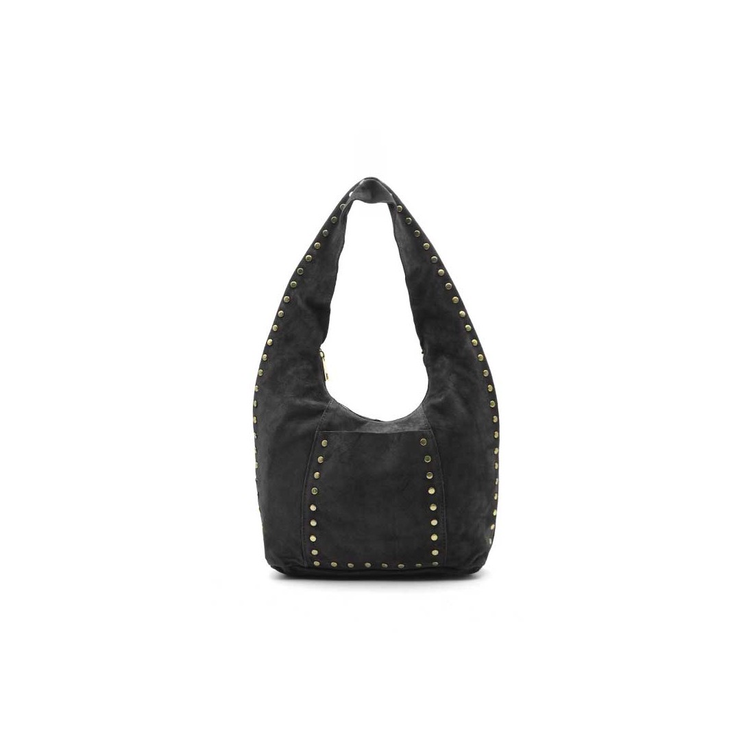 - Tipo: Bolso de hombro de serraje con tachuelas.