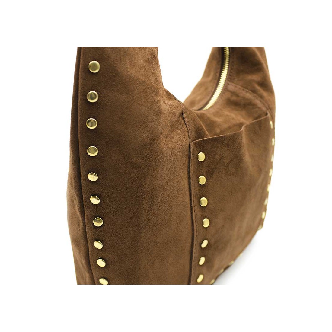 - Tipo: Bolso de hombro de serraje con tachuelas.