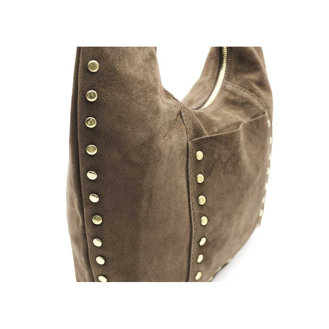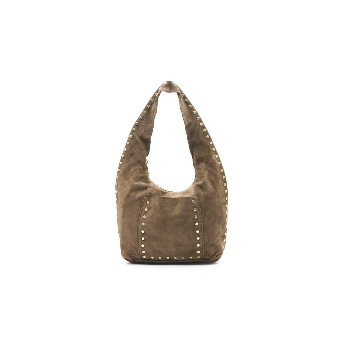 - Tipo: Bolso de hombro de serraje con tachuelas.
