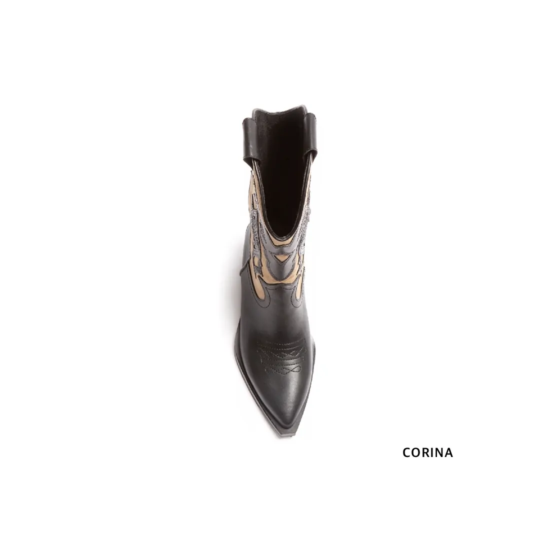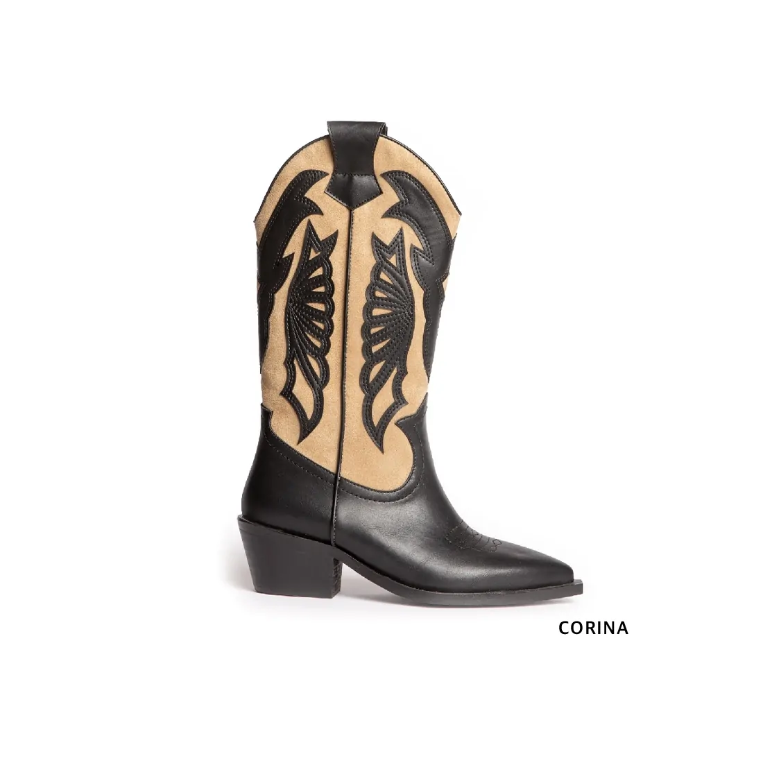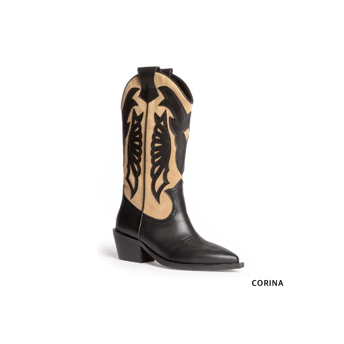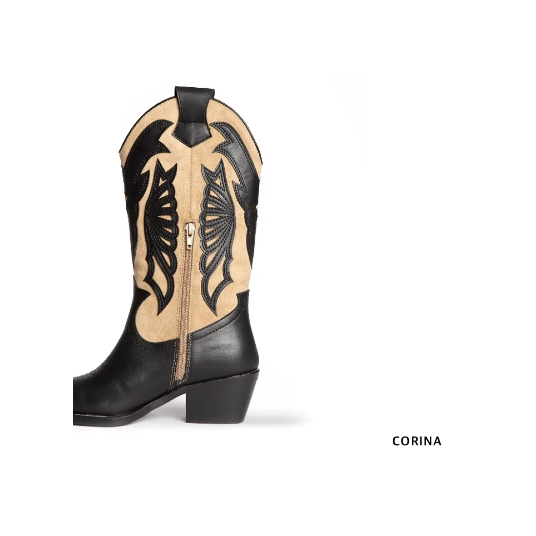 Atrévete a lucir un estilo distintivo con la Bota Negra Cowboy de la colección Corina. Estas botas no son solo un accesorio, son una declaración de moda.