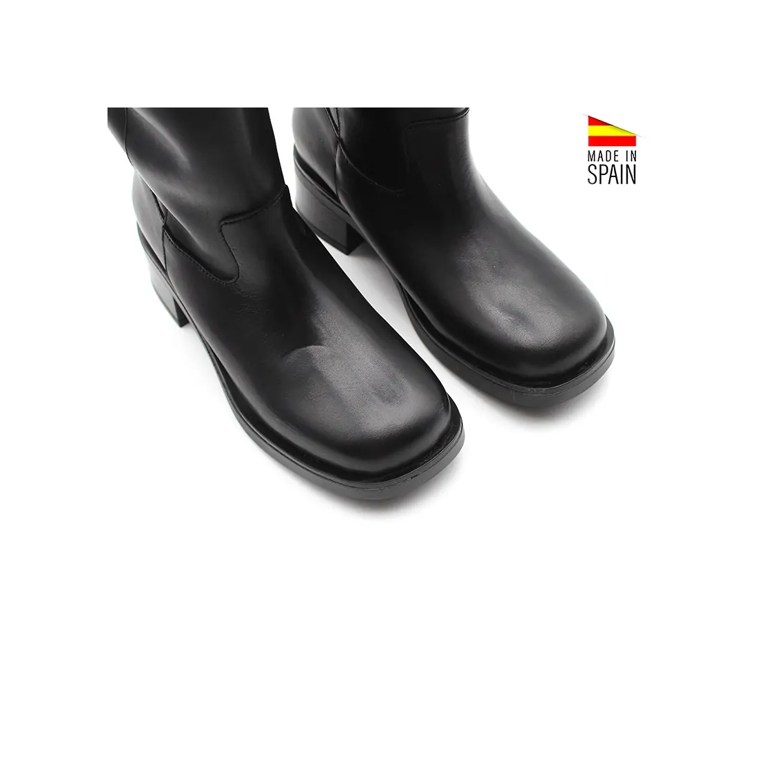 La suela de goma con un tacón de 4 cm y una plataforma de 1,3 cm garantiza una pisada cómoda y segura. Además, su suavidad, que las hace sentir como un guante, te permite llevarlas durante todo el día sin molestias. Estas botas están hechas en España, lo que garantiza la mejor calidad en cada paso.