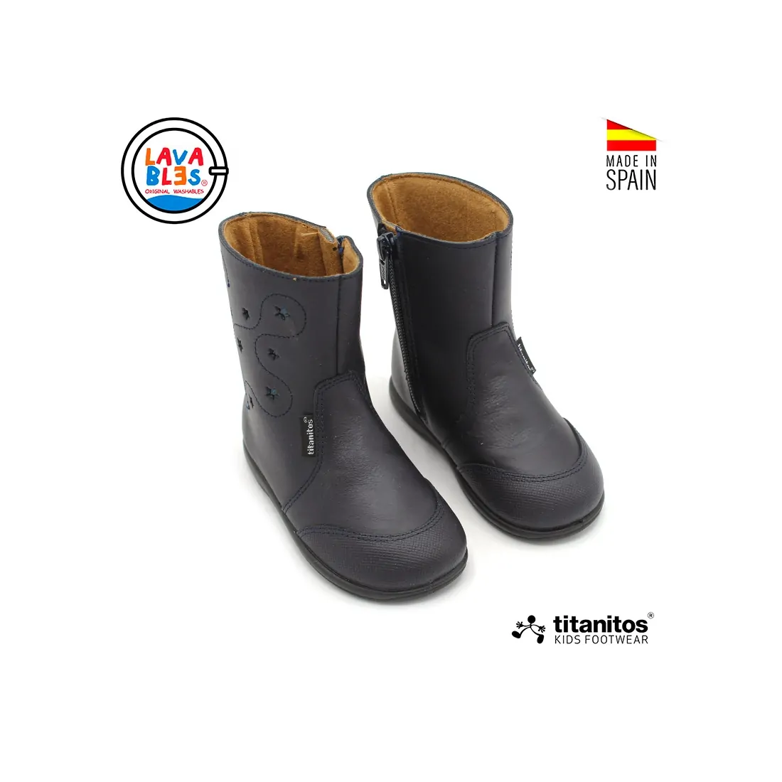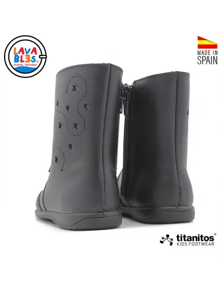 Fabricadas en España por la marca Titanitos, confeccionadas en piel de alta calidad y con plantilla extraible de piel y un interior de pelito suave y calentito, estas botas mantienen sus pies abrigados y cómodos durante todo el día. La suela antideslizante proporciona seguridad en cada paso, ya sea en el cole o jugando en el parque.
