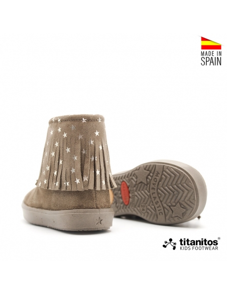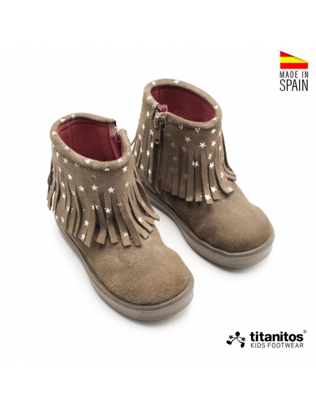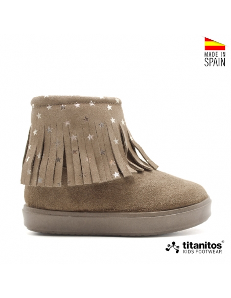 Estos botines con flecos para niña en color taupe de la marca Titanitos son perfectos para el otoño-invierno.