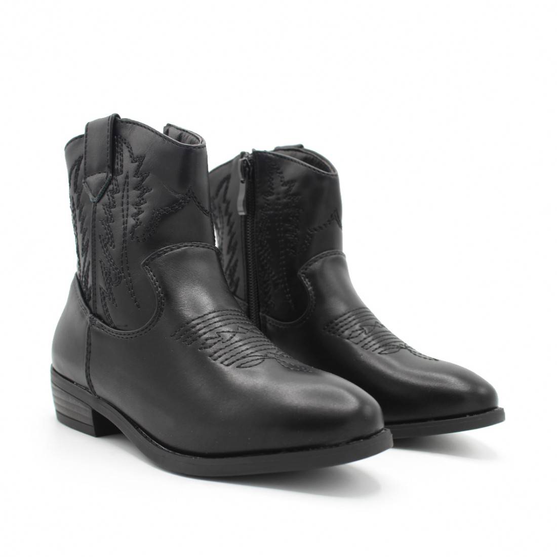 En un elegante color negro, estas botas cuentan con bordados clásicos en el mismo tono, agregando un toque auténtico y distintivo. Con un diseño tipo botín y una altura de caña de 15 cm.