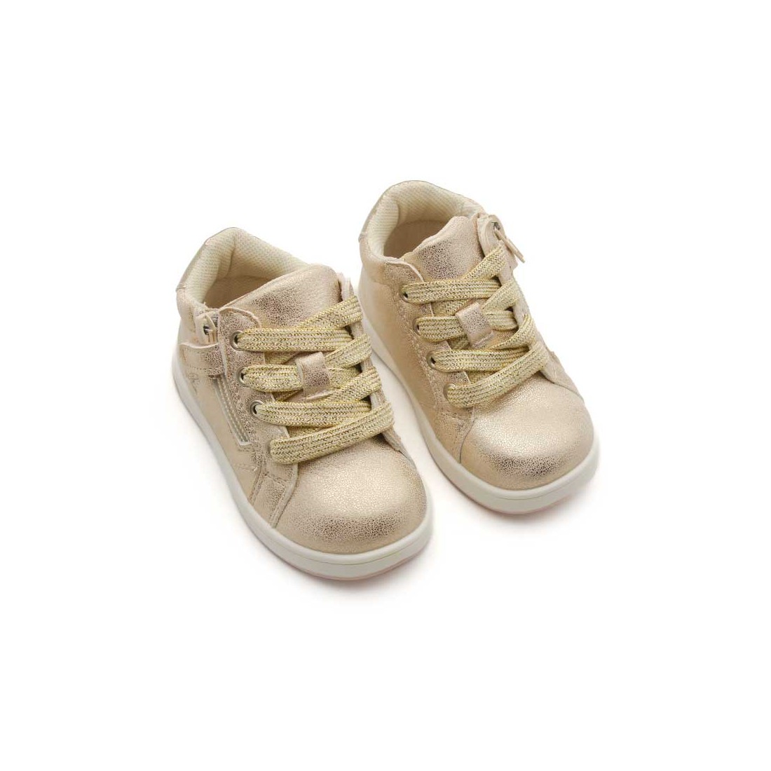 El Botin Deportivo Niña en color dorado metalizado es el calzado perfecto para las pequeñas que quieren brillar en cada paso.