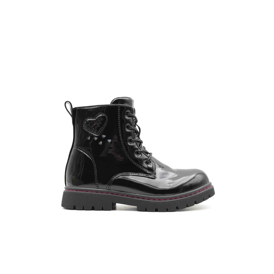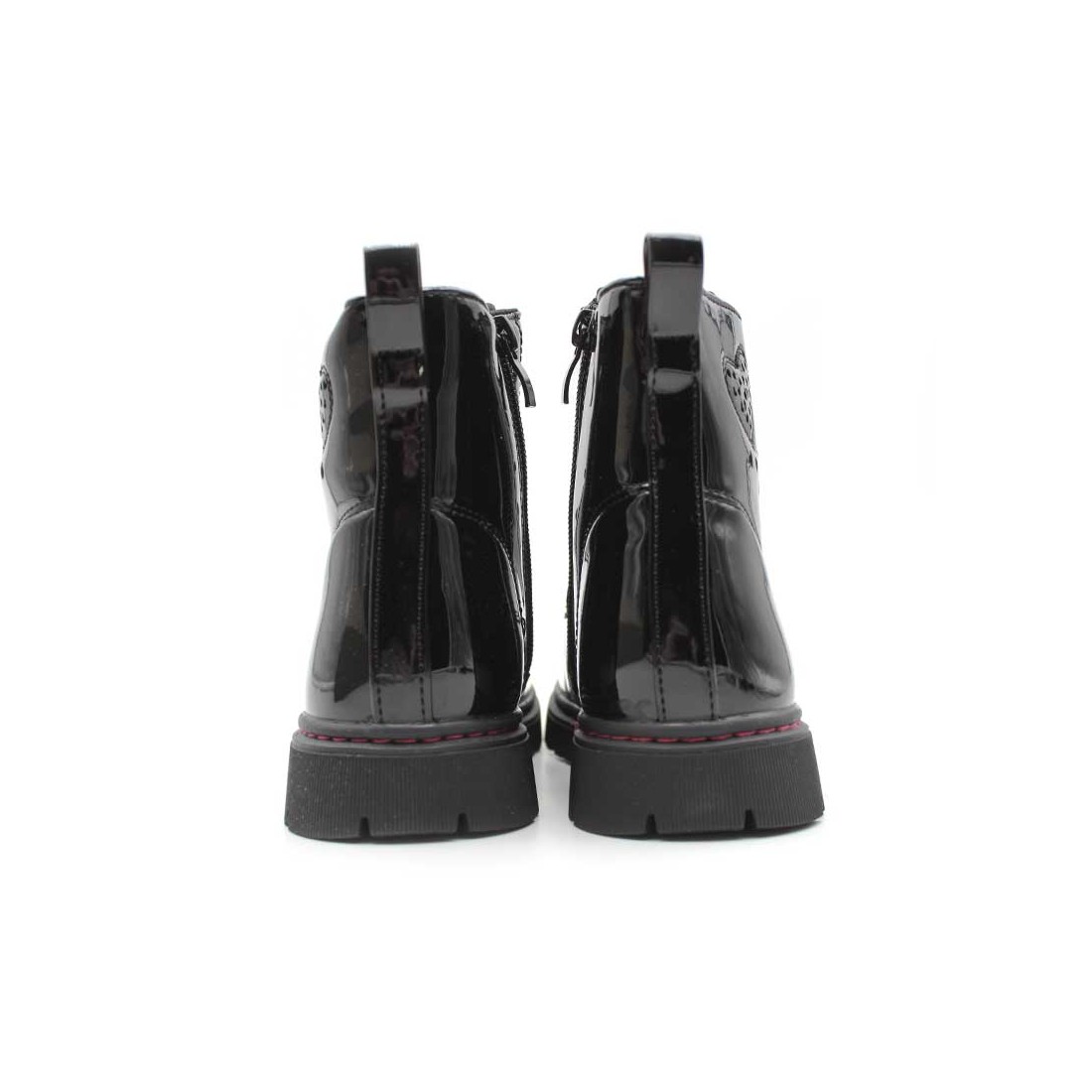 Su acabado en charol negro destaca por el brillo elegante que convierte este modelo en un imprescindible del armario infantil. El detalle de los corazones con glitter en el lateral aporta un toque dulce y divertido, pensado para niñas que quieren destacar con estilo.