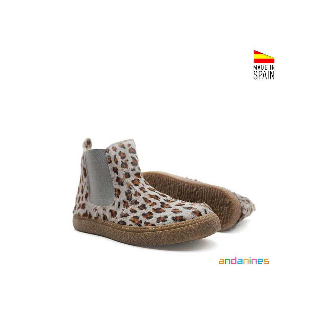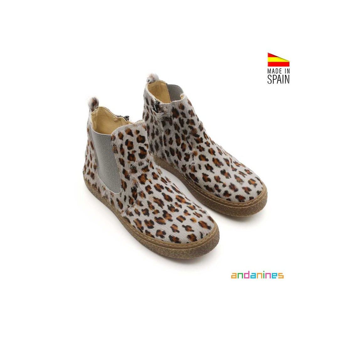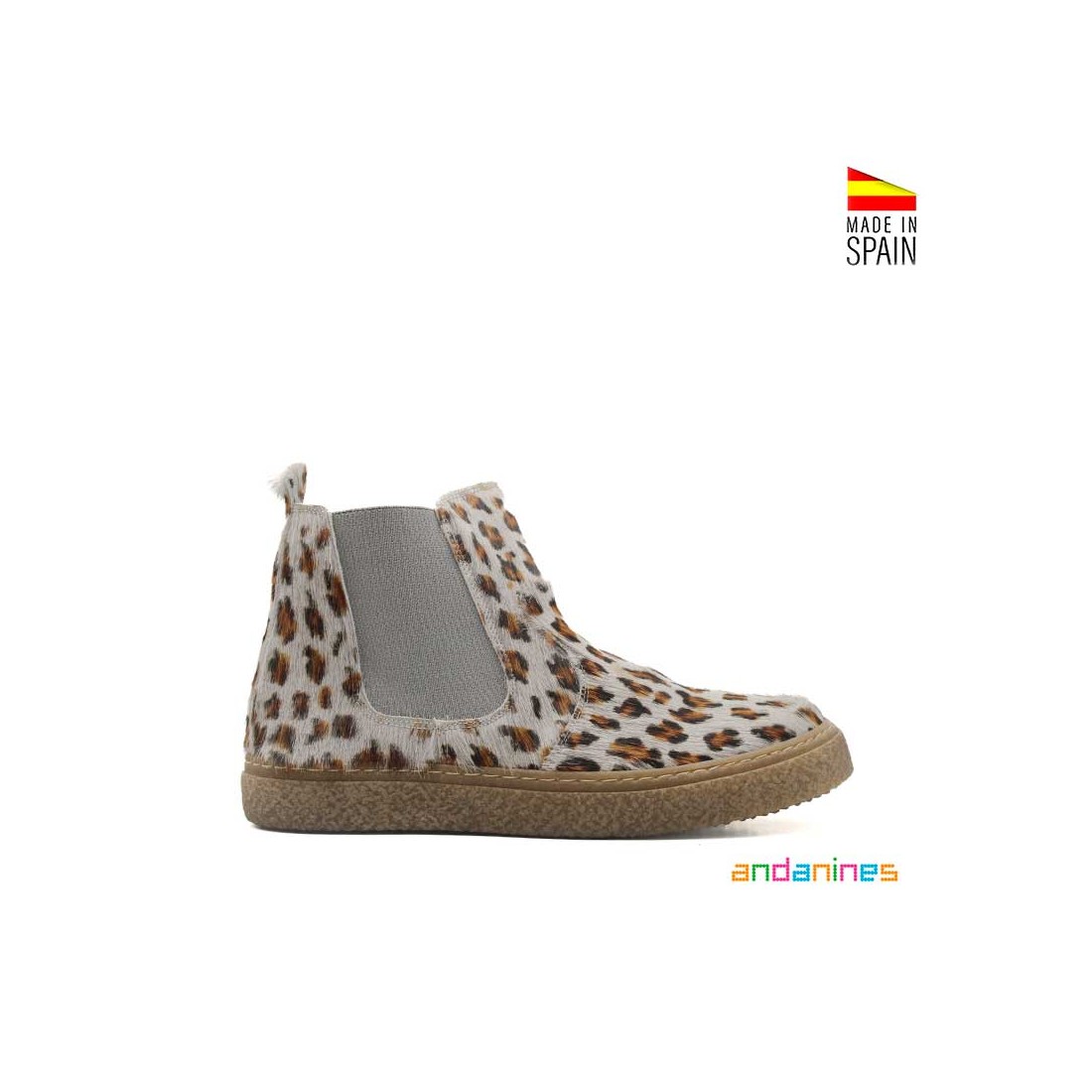 Este modelo en serraje con acabado pelo y estampado leopardo en tonos grises es la opción perfecta para las niñas que buscan un calzado diferente, moderno y con personalidad.
