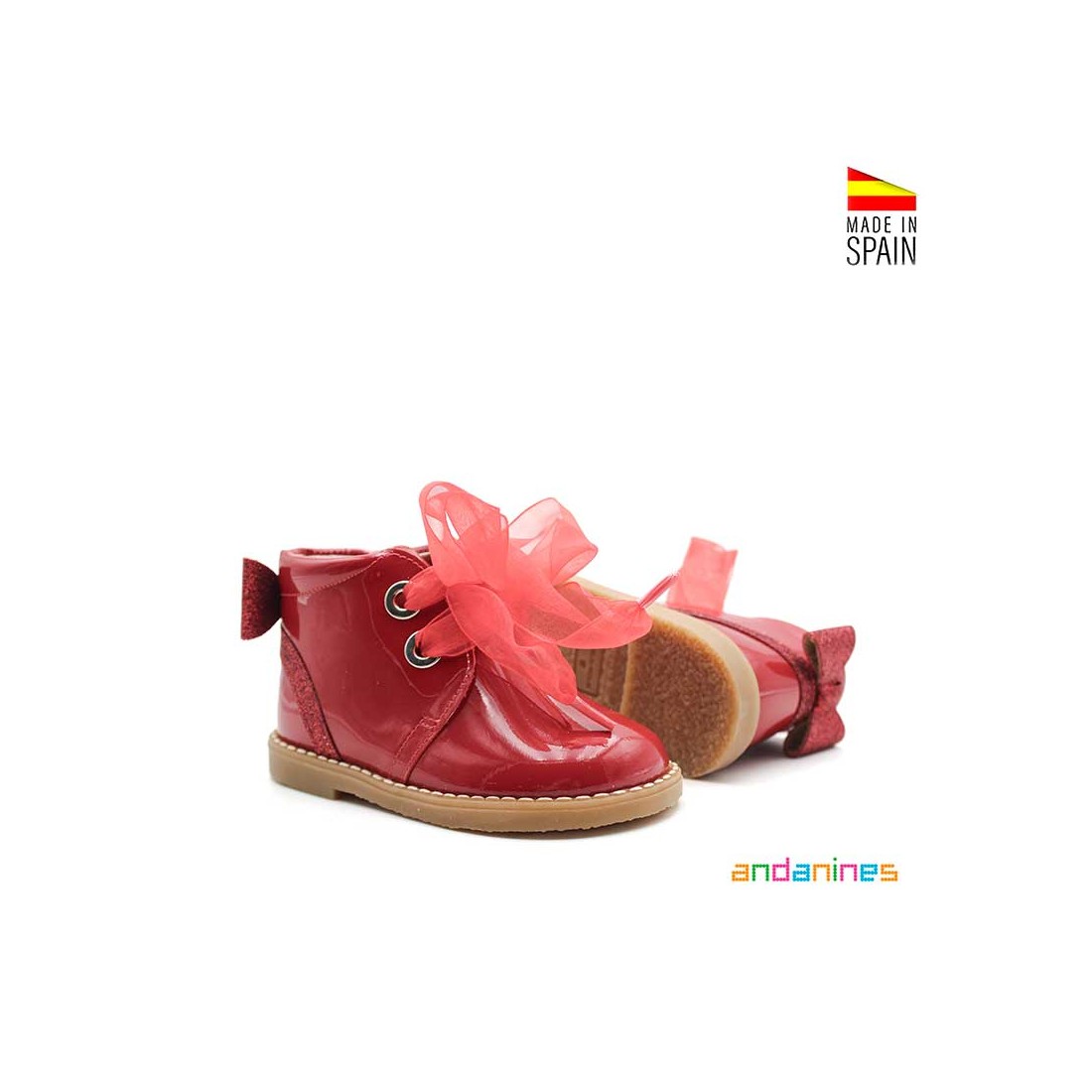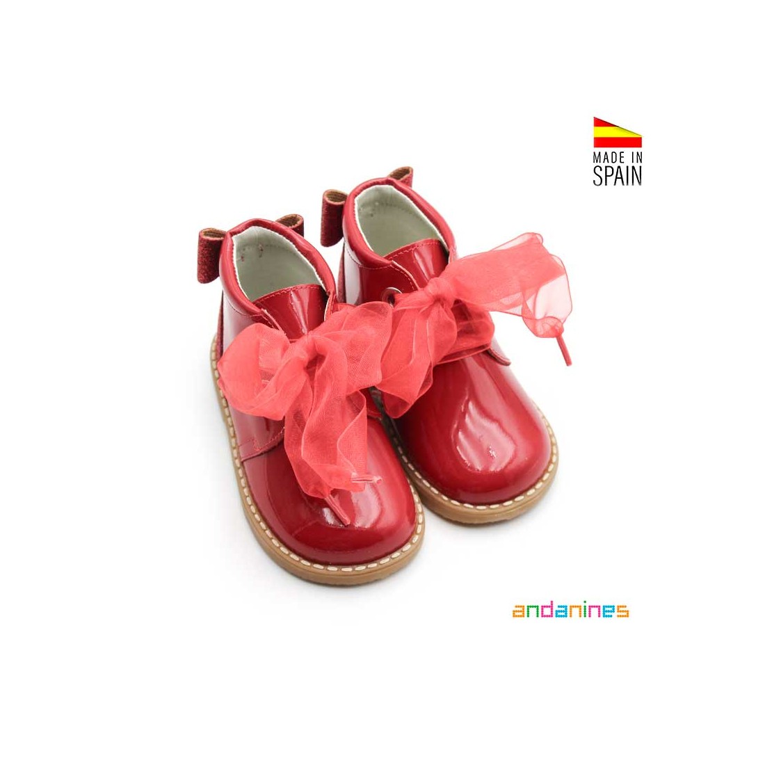 Los Botines de Niña en charol rojo de Andanines son pura elegancia con un toque divertido, ideales para destacar en cualquier ocasión especial.