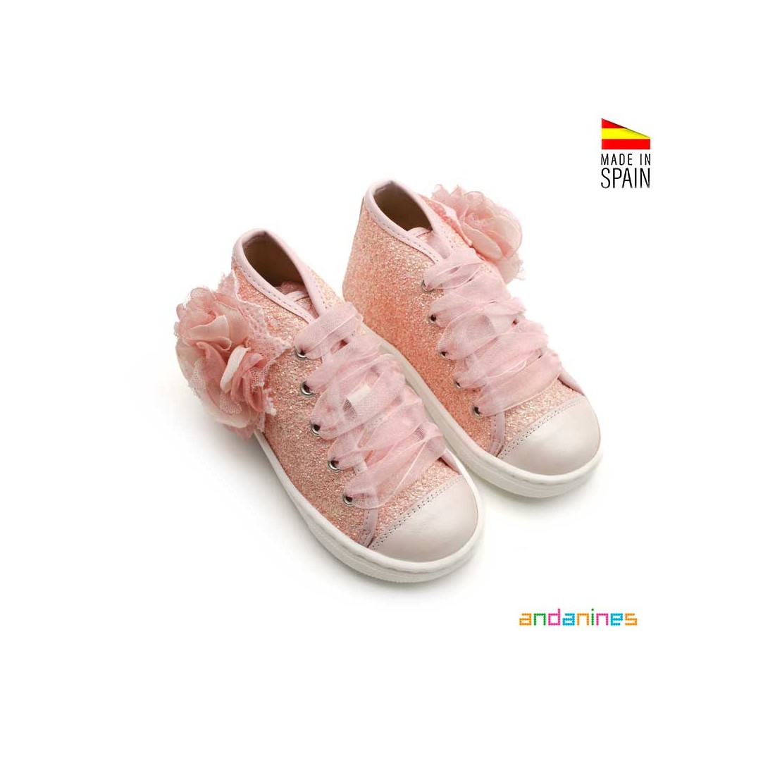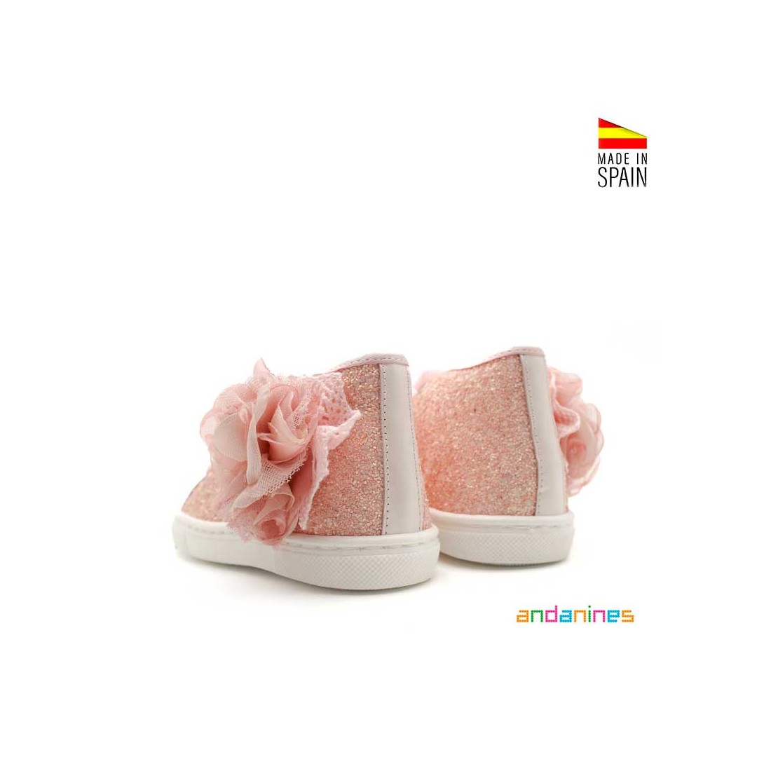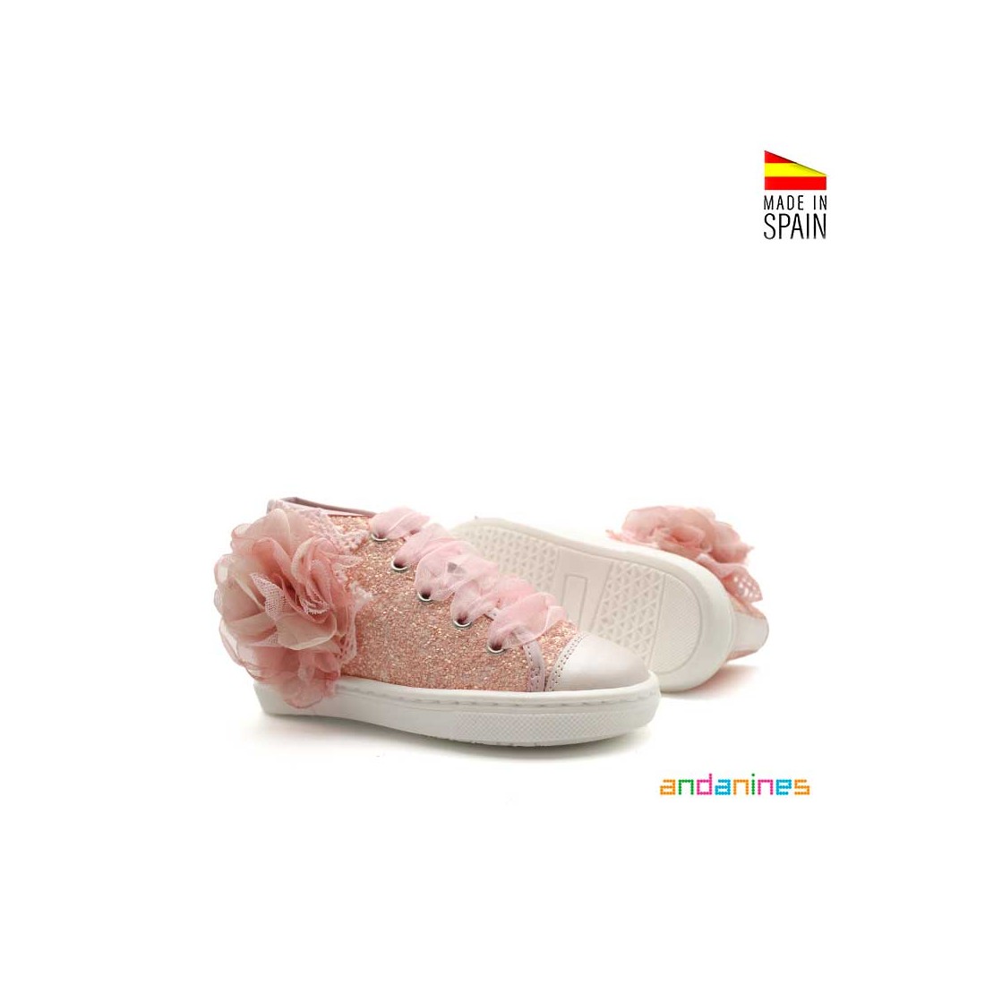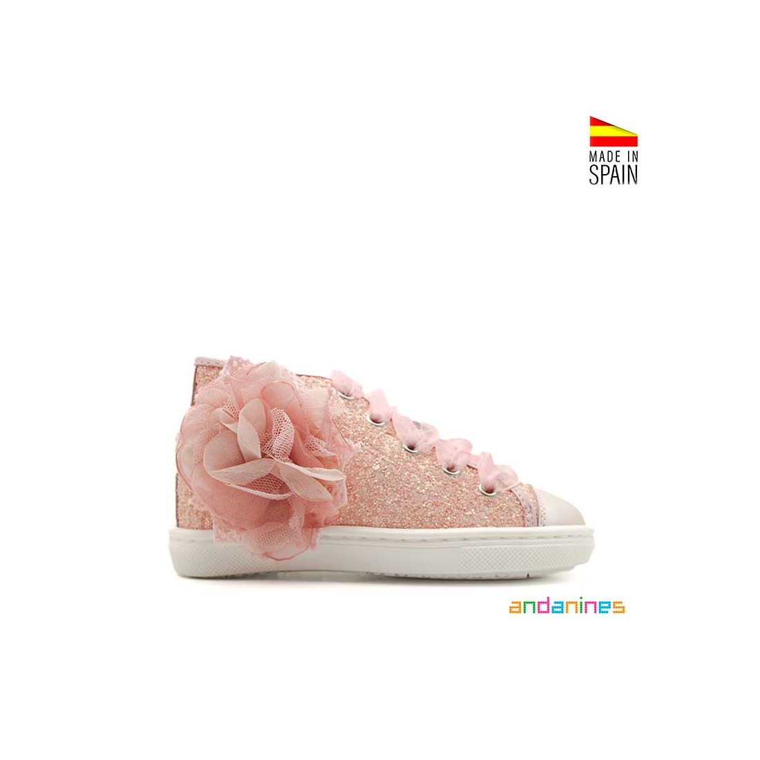 Los Botines con Glitter de Andanines en color rosa son un modelo lleno de encanto, perfecto para brillar en cualquier ocasión especial.