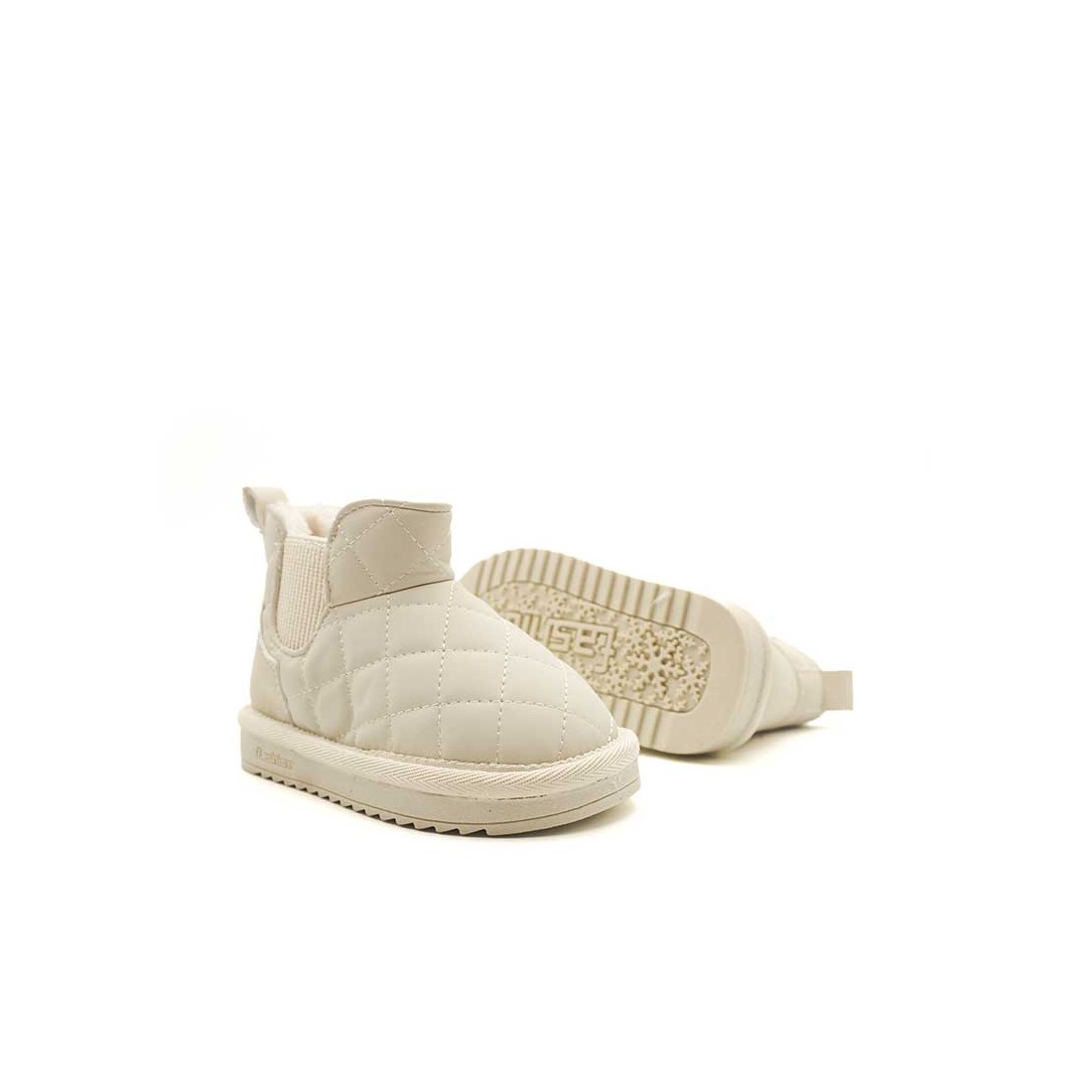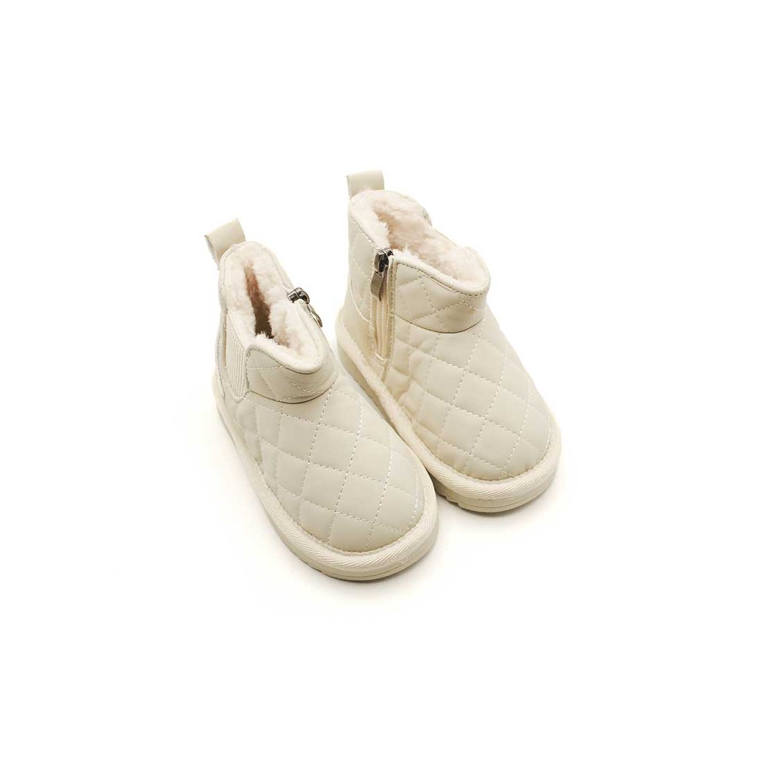 El diseño incorpora un elástico lateral exterior para un ajuste fácil y una cremallera interior que facilita el calce, ideal para pequeñas exploradoras que no quieren perder tiempo antes de salir a jugar. Con su textura acolchada y mullida, estas botas son el equilibrio perfecto entre moda y funcionalidad.