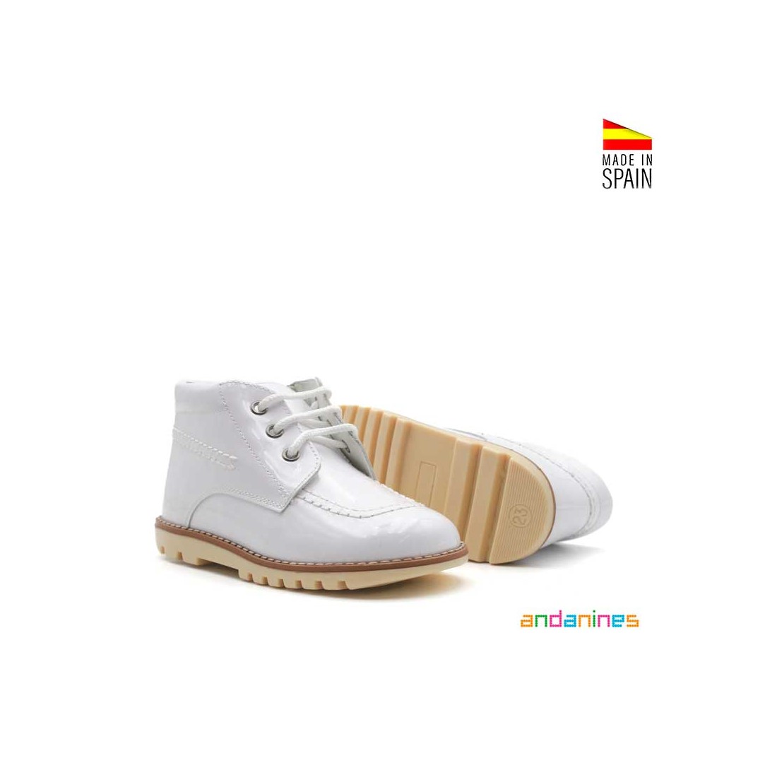 Estas Botas Niño Vestir en charol blanco son una auténtica joya dentro del calzado infantil.