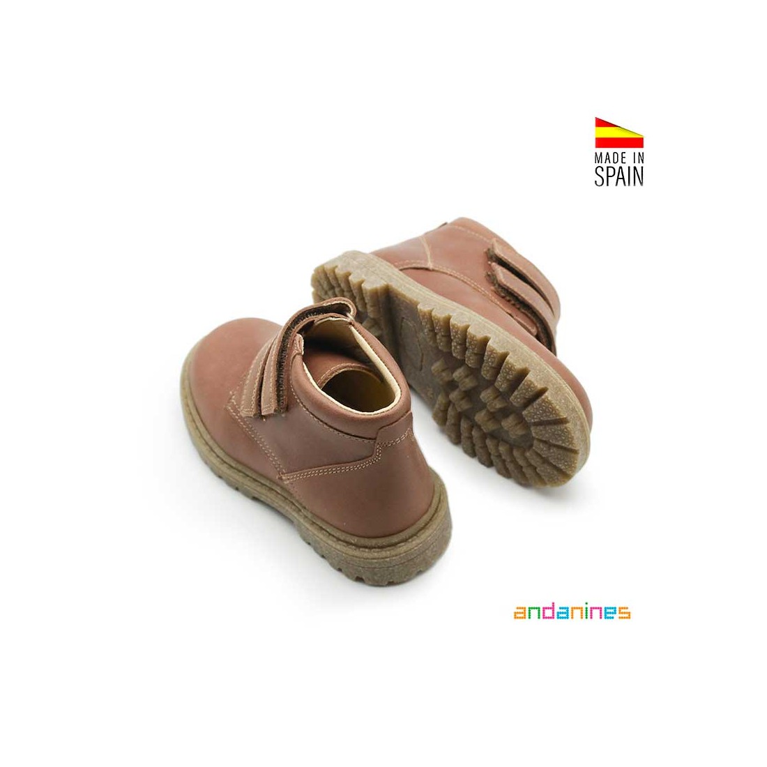 Este botín de piel marrón de Andanines es un clásico que nunca pasa de moda, diseñado para aportar estilo, comodidad y durabilidad en el día a día de los más pequeños.