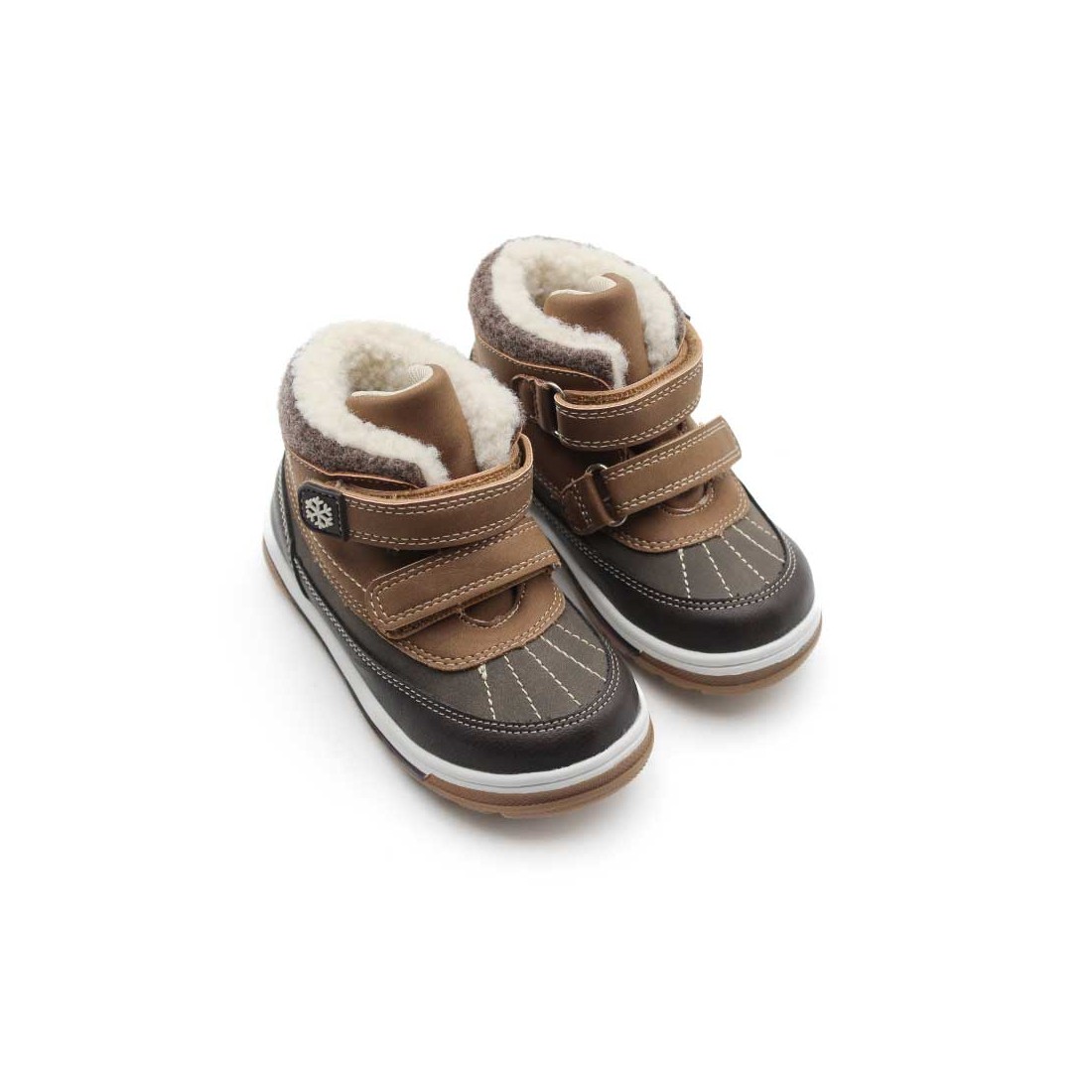 A prueba de invierno y juego, estas Botas de Nieve Niño combinan marrón y tierra con doble velcro para un ajuste rápido y estable.