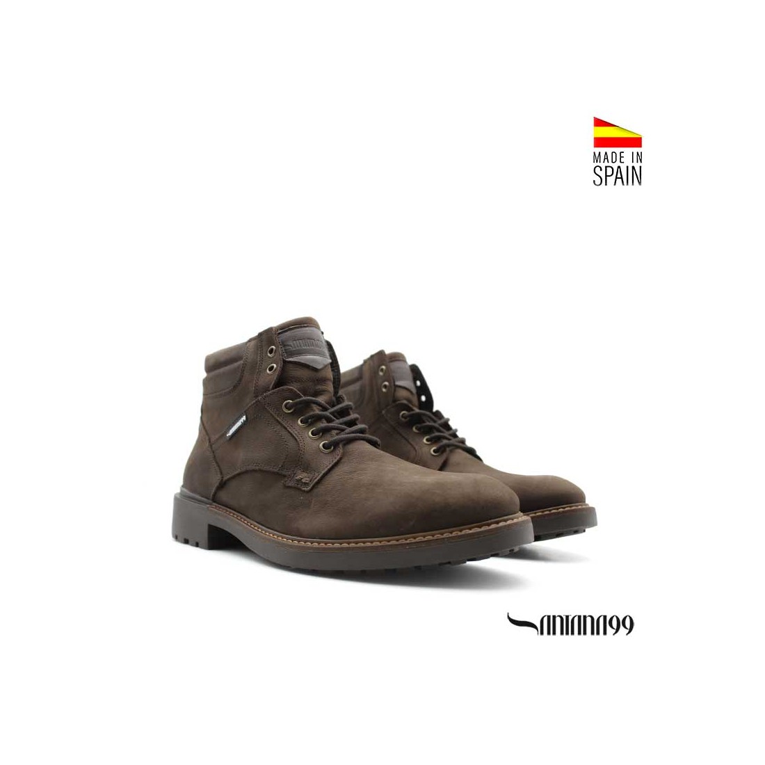 Fabricadas en España con piel nobuck marrón, este diseño fusiona la estética montañera con un aire urbano contemporáneo, ideal para quienes buscan un calzado versátil y duradero.