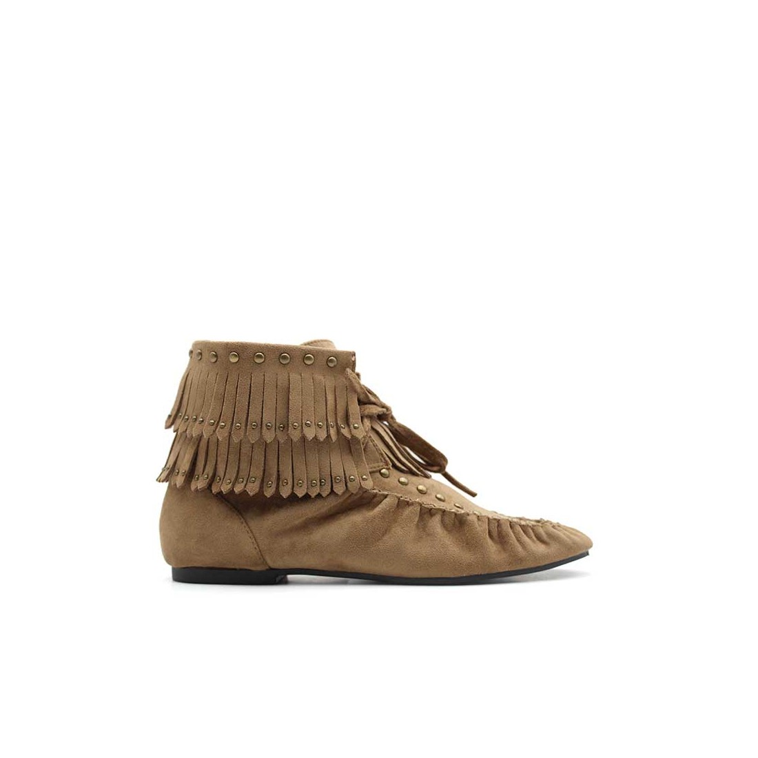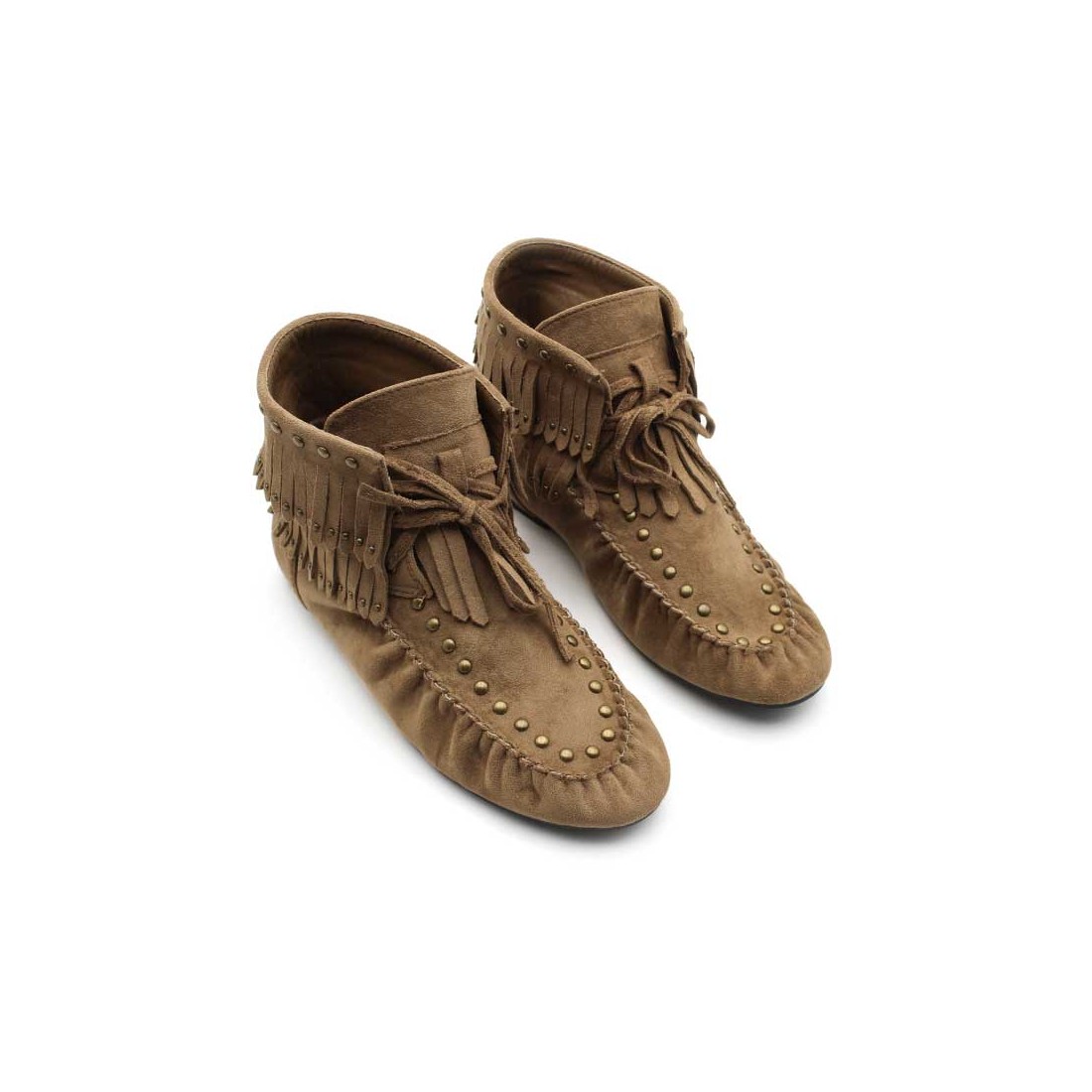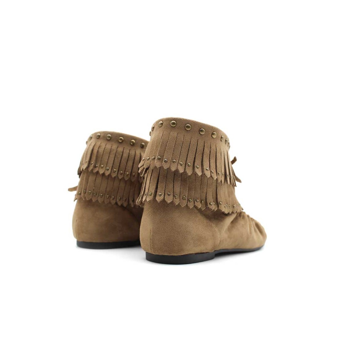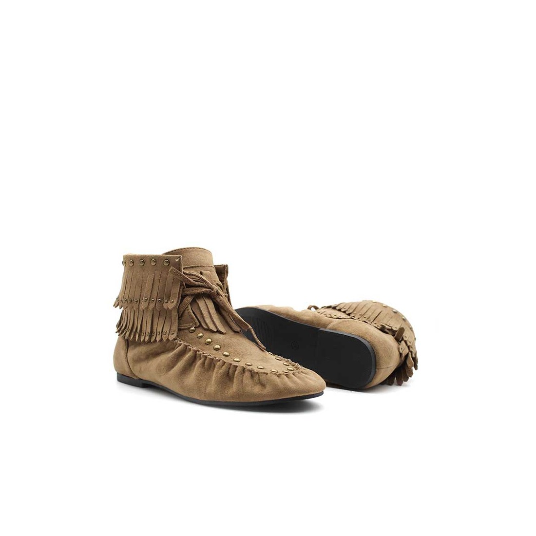 Descubre el estilo boho que arrasa esta temporada con este Botin Flecos Mujer en color camel.