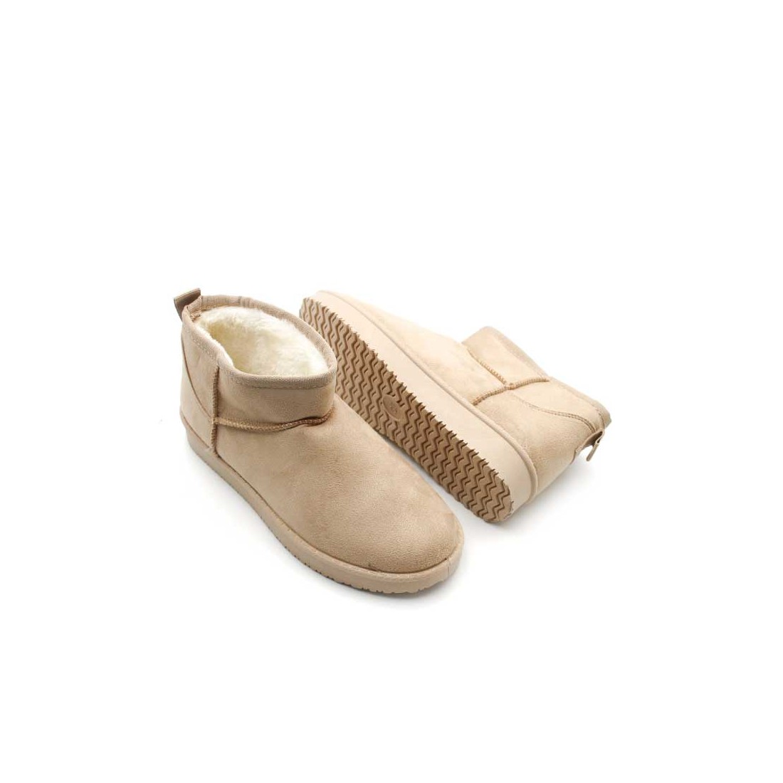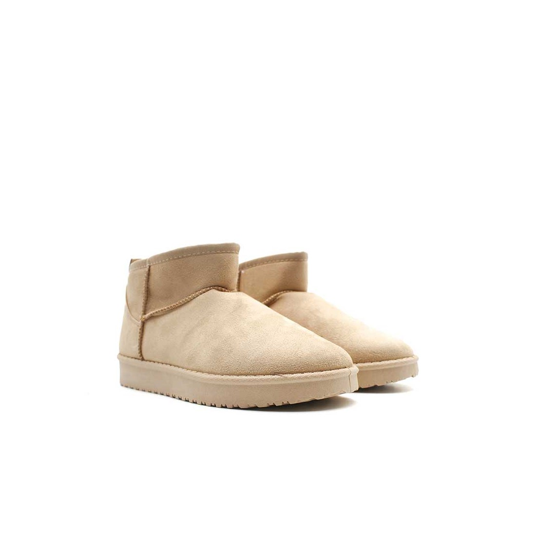 Los Botines Pelo Interior Mujer en beige añaden calidez inmediata a tus conjuntos gracias a su forro de pelo mullido y exterior tipo antelina de tacto suave.