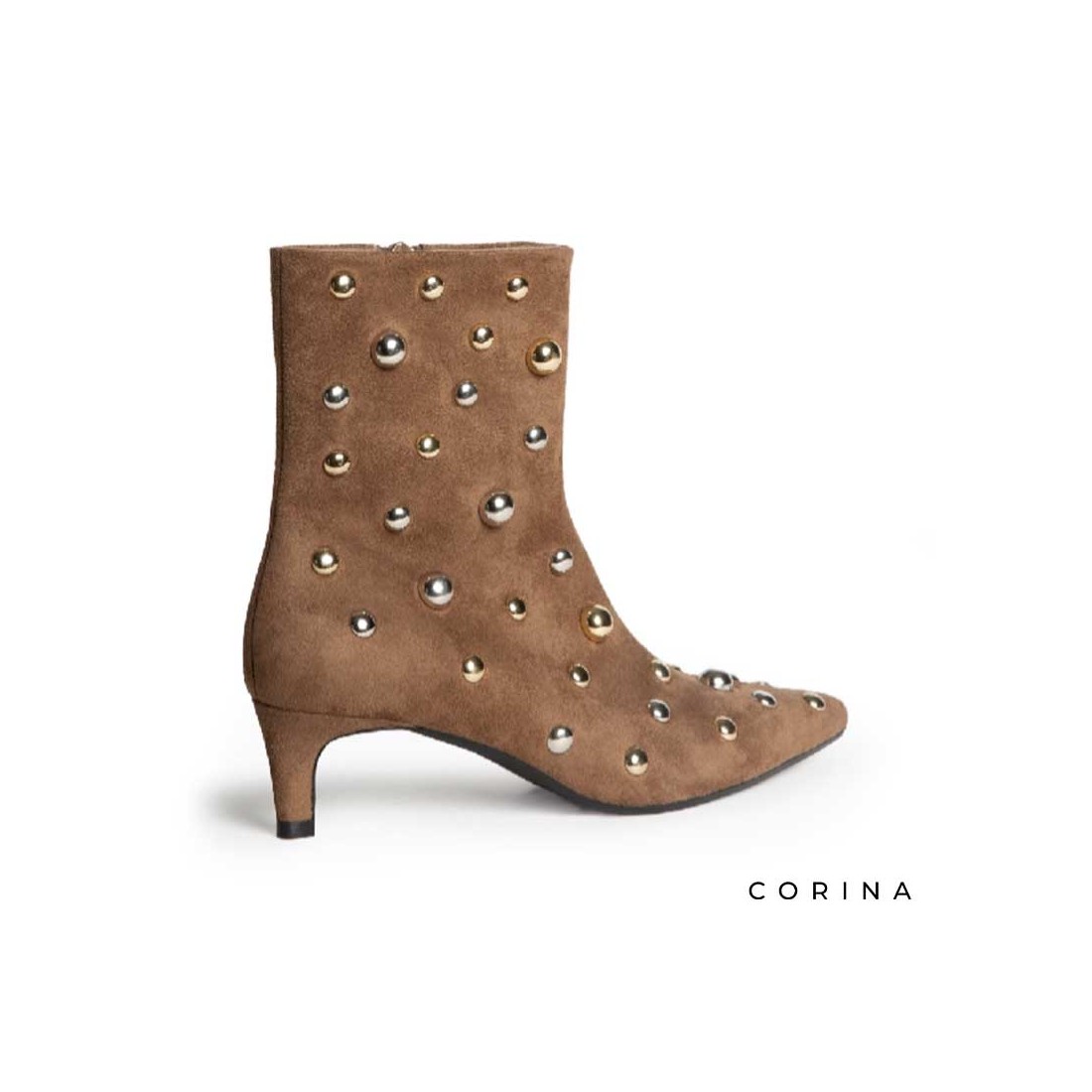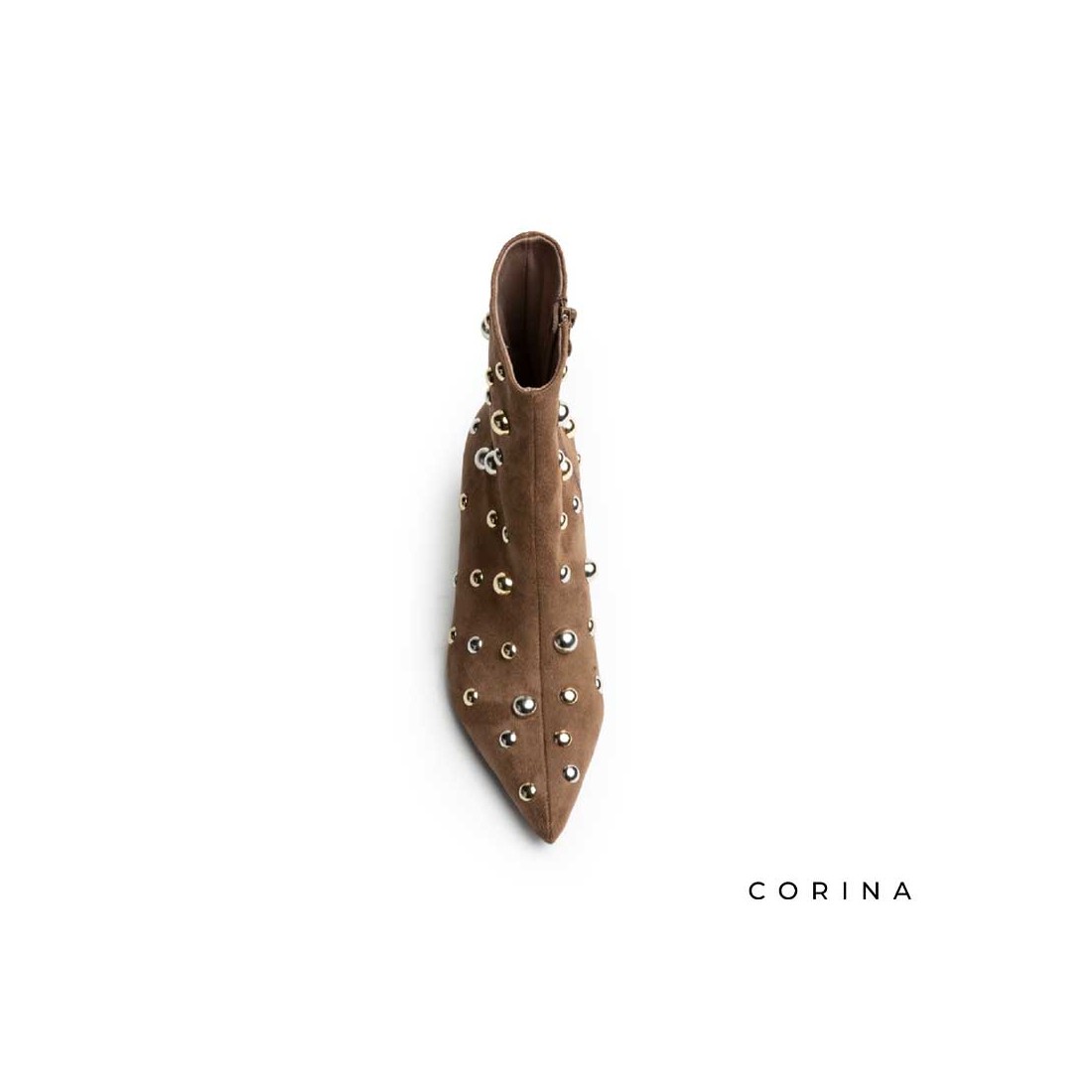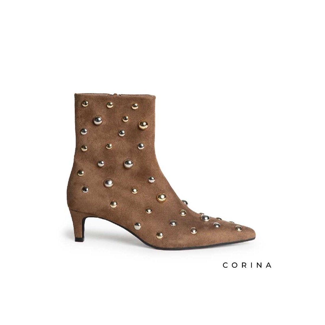El Botin Tacon Tachas de Corina es el equilibrio perfecto entre estilo atrevido y sofisticación.
