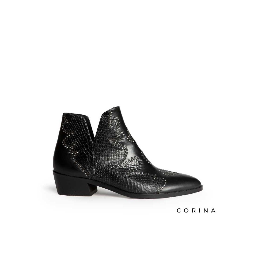 Con diseño en color negro con grabado coco y tachuelas plateadas en la zona frontal y lateral, inspiradas en el estilo western con un roque rockero ideal.