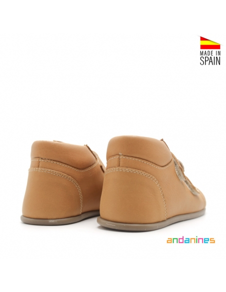 Estos botines en color camel de Andanines representan el auténtico Calzado Barefoot España para niñas y niños, combinando estilo y respeto por el desarrollo natural del pie.