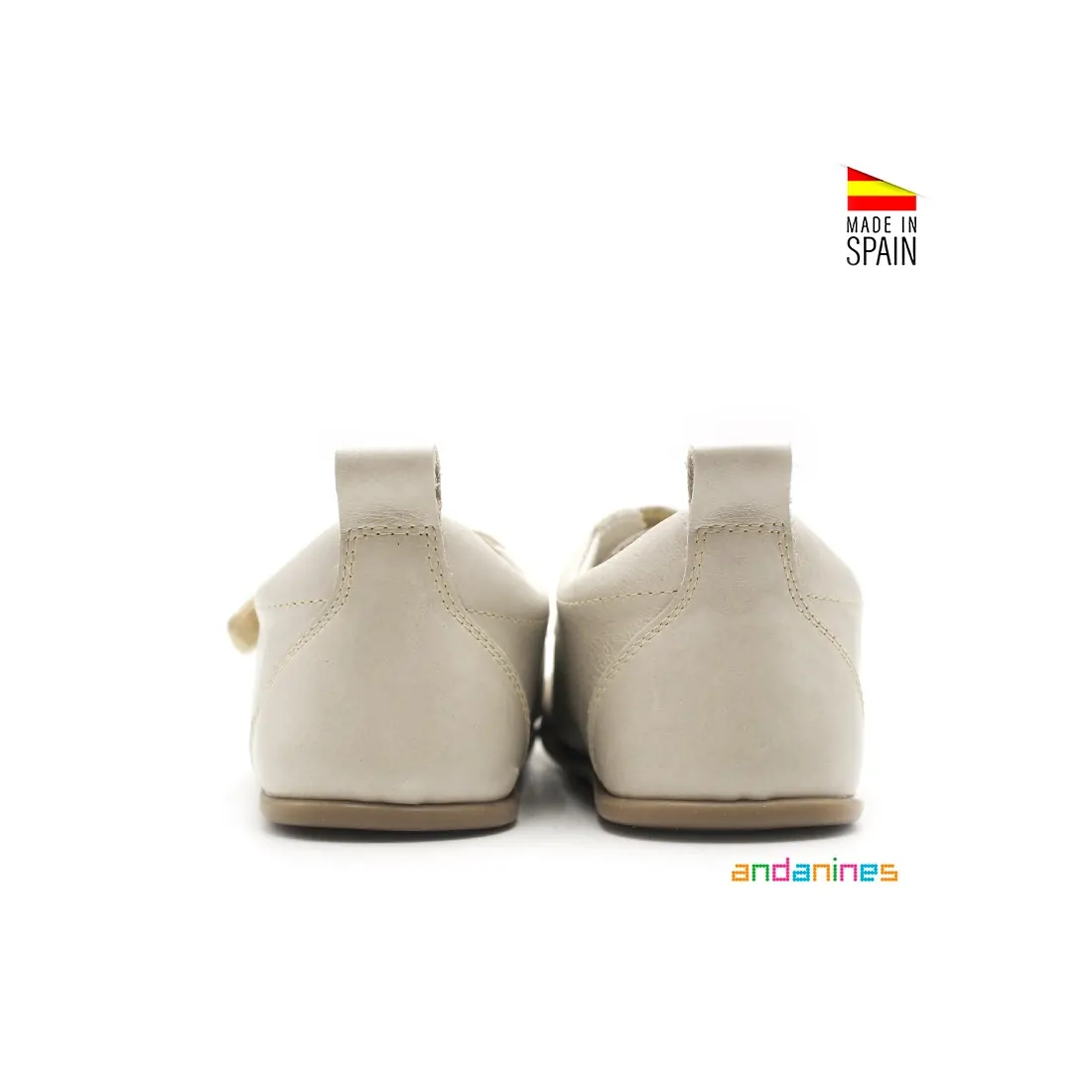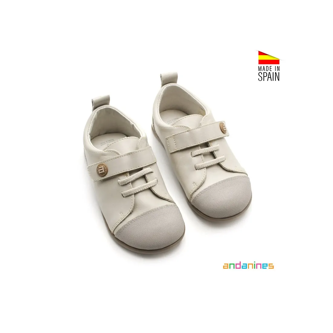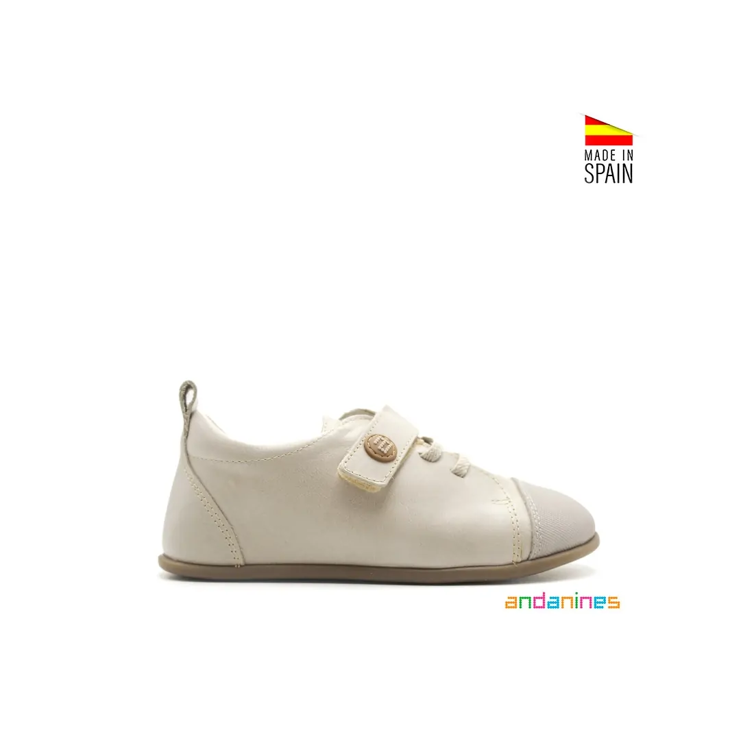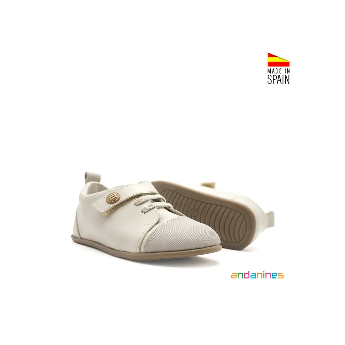 Entre las Marcas de Calzado Respetuoso, Andanines destaca con este modelo en color arena, diseñado específicamente para los más pequeños.