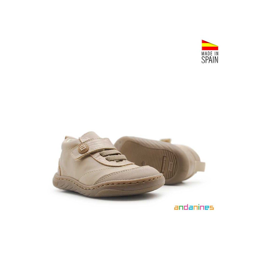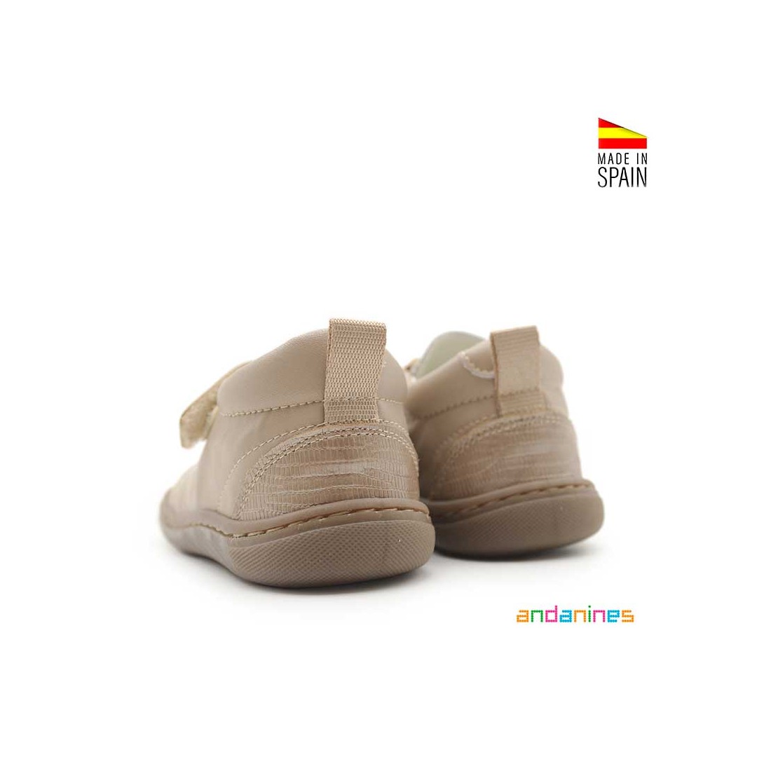 Un modelo fabricado en España por Andanines, práctico y duradero, pensado para cuidar sus pies mientras exploran el mundo paso a paso.