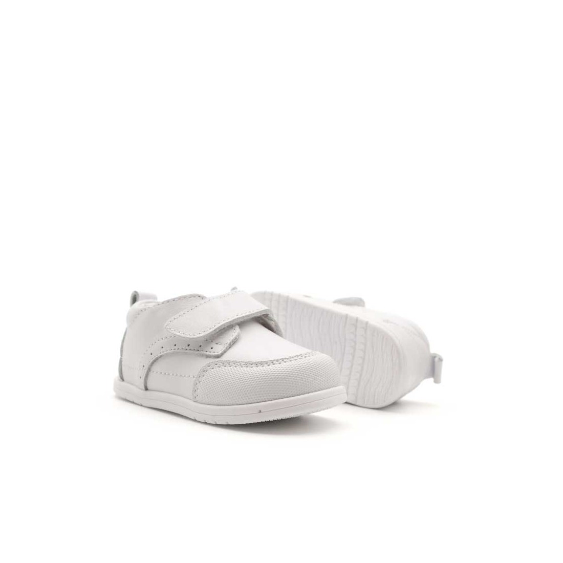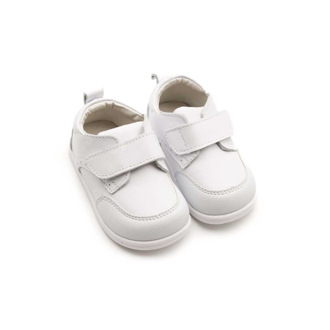 Estos zapatos barefoot para bebé en color blanco ofrecen un calzado respetuoso que acompaña el crecimiento del pie, manteniendo una libertad total de movimiento.