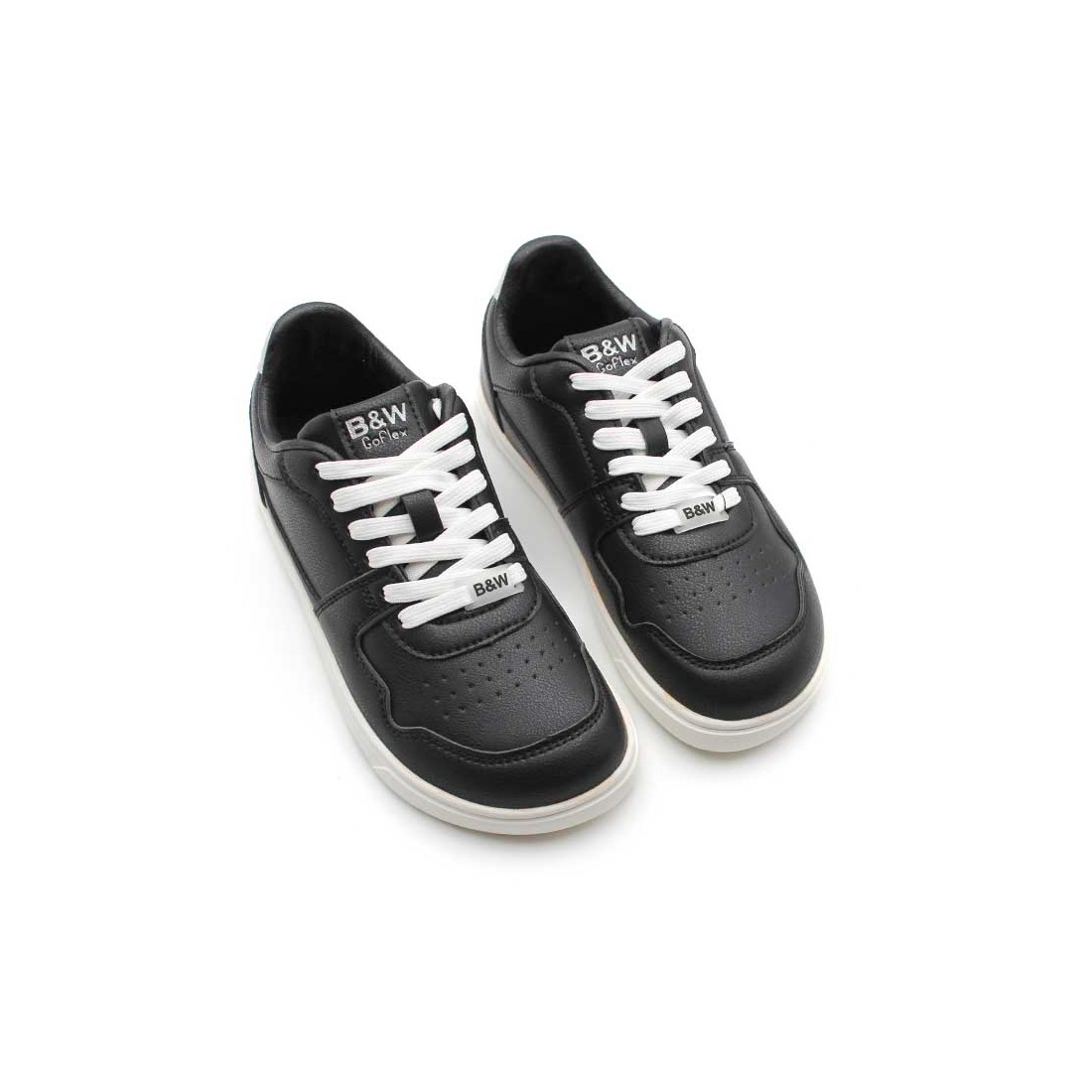 Este modelo en color negro combina a la perfección con todo (literalmente, con TODO lo que tengas en el armario). Vienen con cordones clásicos de color blanco y toda la tecnología barefoot: puntera ancha, drop cero y una suela flexible de goma que te hará sentir como si caminaras sobre libertad pura.