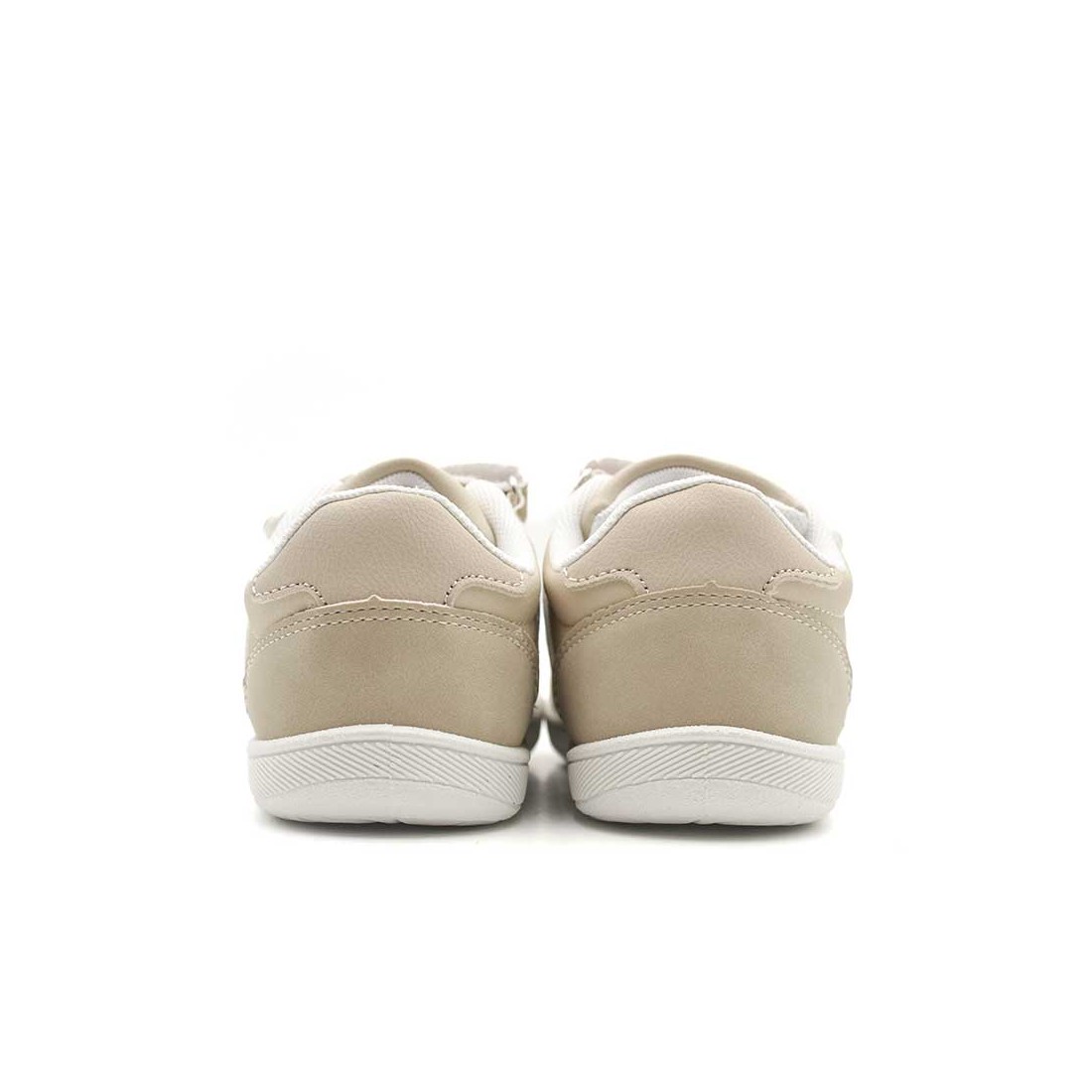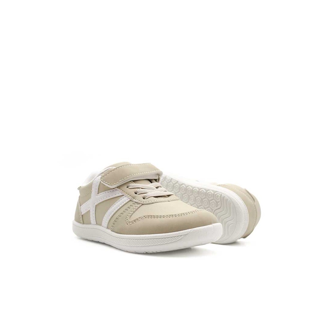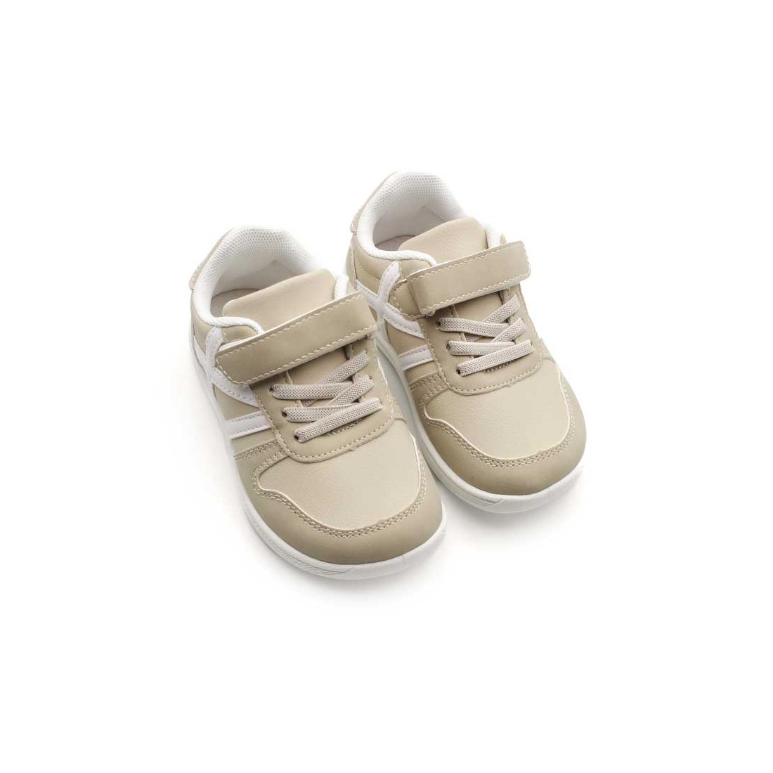 Descubre las Zapatillas Niños Respetuosas en color beige con bandas laterales blancas, un diseño limpio y fácil de combinar para el día a día.