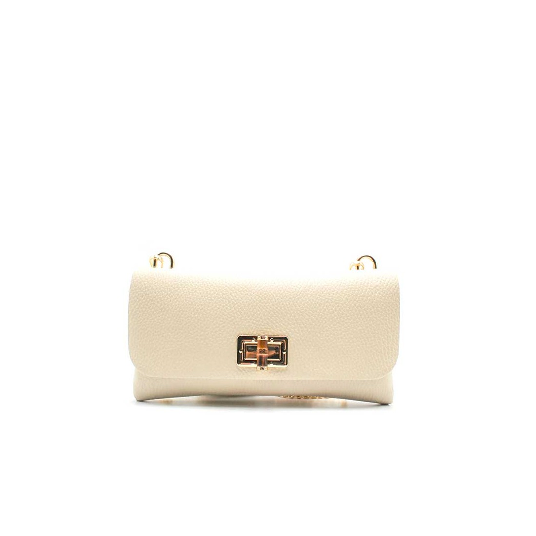 La silueta rectangular con solapa marca una estructura definida y ordenada, mientras que el cierre dorado con inspiración bambú introduce un detalle con carácter que rompe la uniformidad con sutileza.