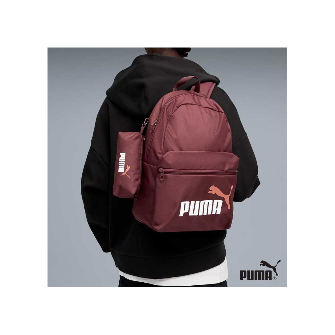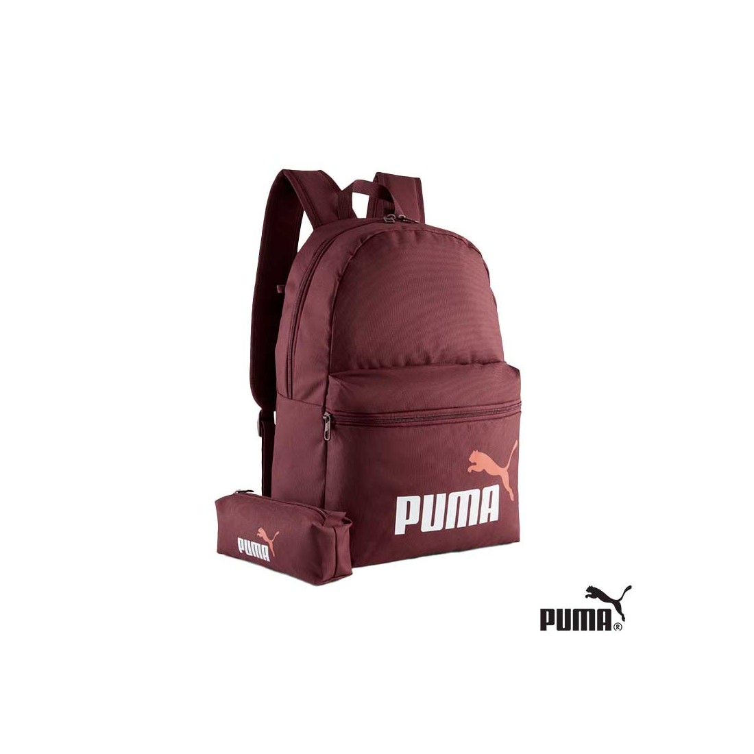 Este modelo forma parte del set Puma Phase, e incluye una mochila amplia y un estuche a juego, ideal para la rutina diaria.