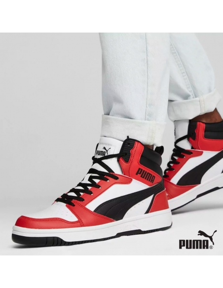 ¡Haz una declaración de estilo con el PUMA Rebound V6 en blanco, rojo y negro! Eleva tu look y tu rendimiento con la confianza que solo Calzados Elche puede ofrecer. ¡No pierdas la oportunidad de poseer este exclusivo par!