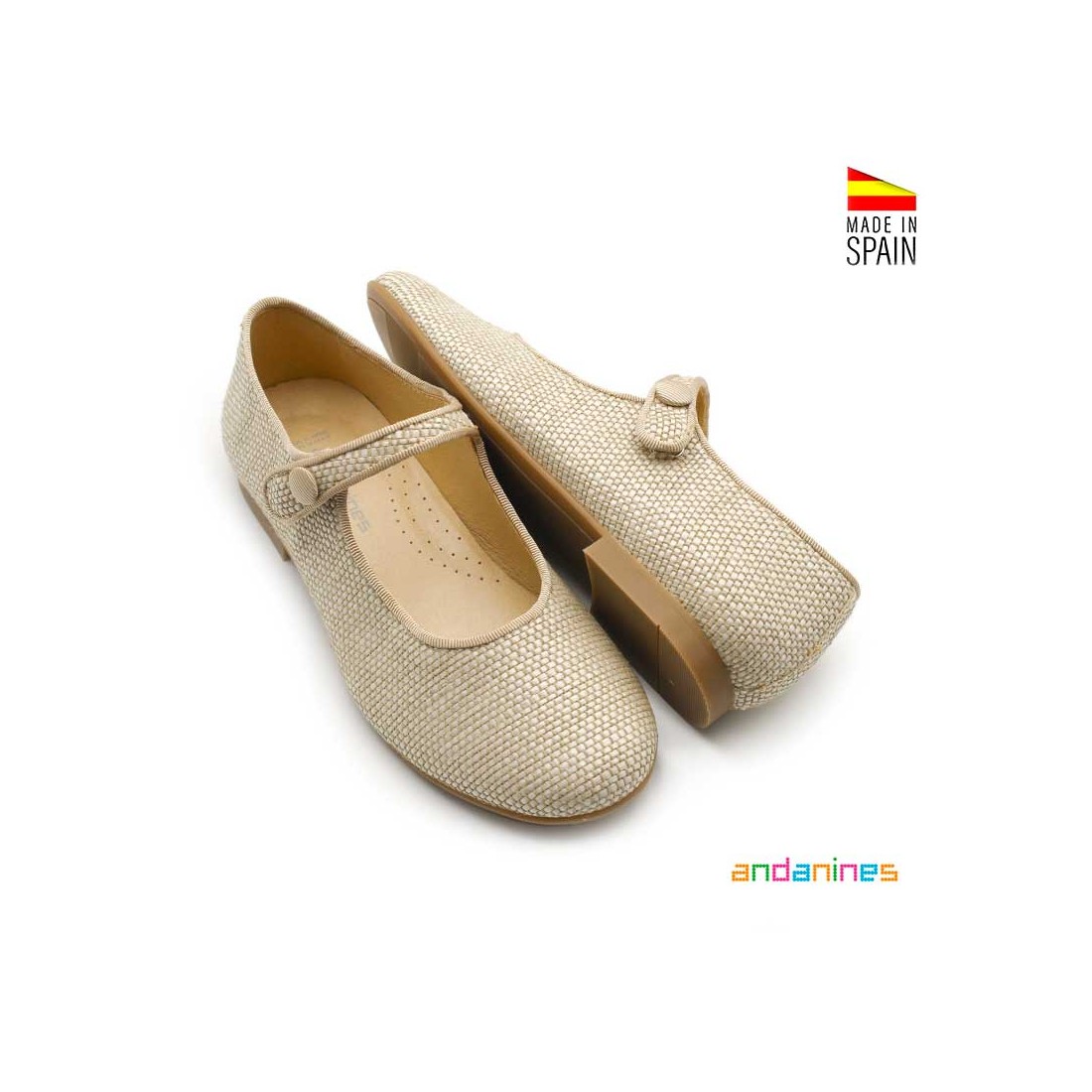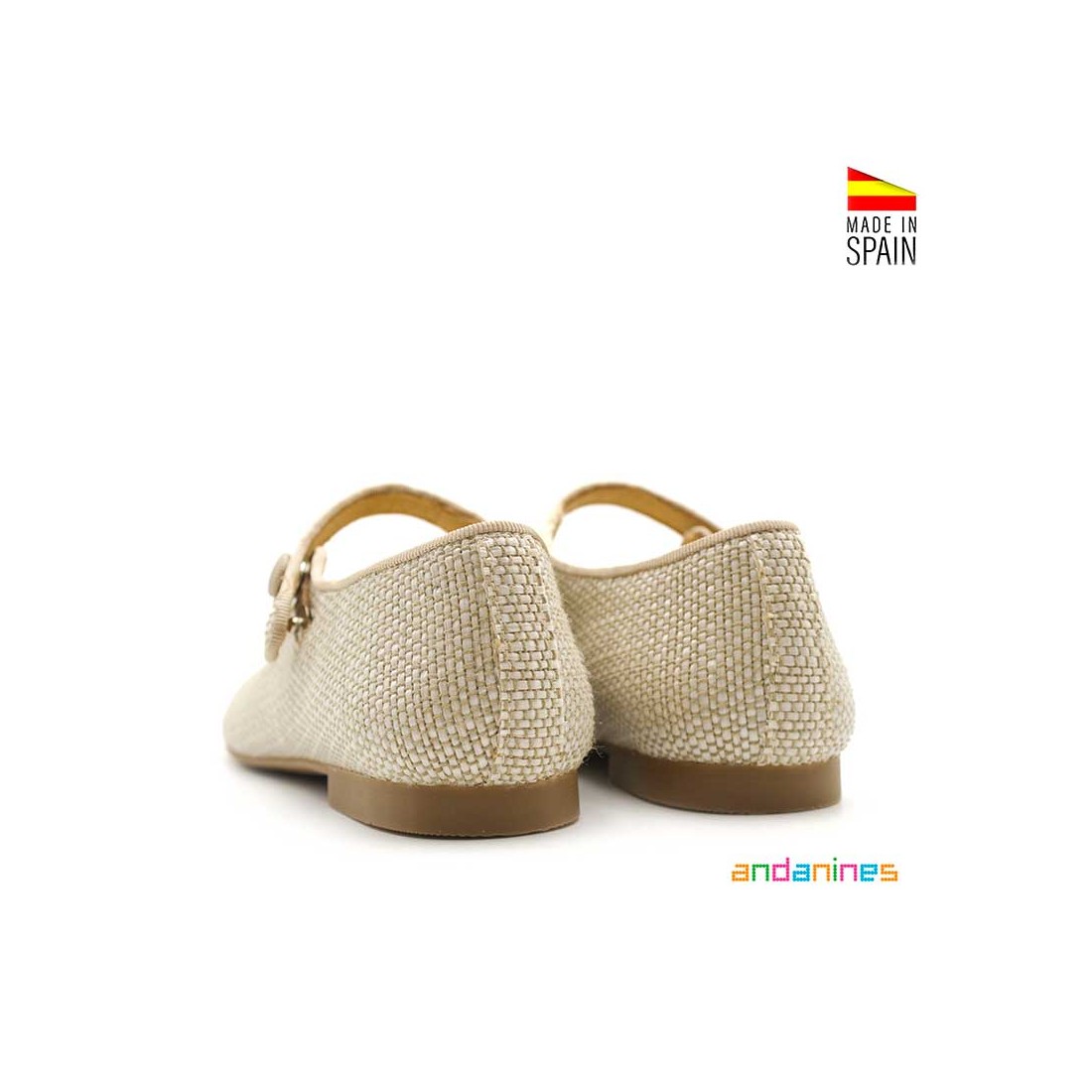 Confeccionadas en España por Andanines, estas merceditas niña combinan artesanía y diseño actual con materiales naturales, para un resultado bonito, cómodo y fácil de combinar.