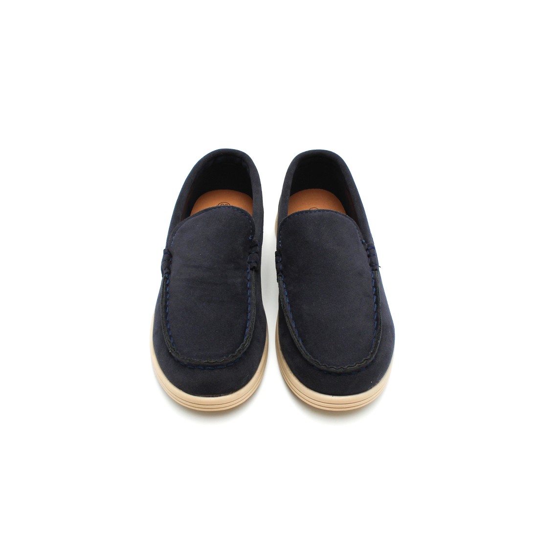 Confeccionados en antelina azul marino, ofrecen un acabado suave y sofisticado que combina perfectamente con conjuntos de vestir, trajes, pantalones chinos o looks más arreglados. La suela de goma en color beige crea un contraste moderno y aporta flexibilidad y estabilidad en cada paso.