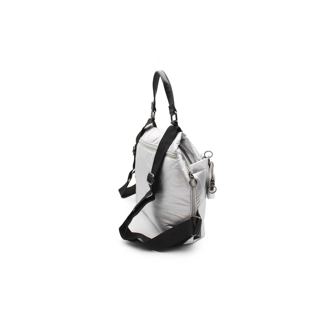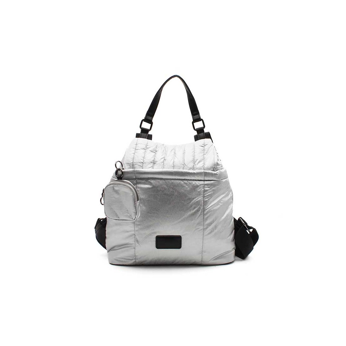 La Mochila Acolchada Plateada es el accesorio perfecto para mujeres que quieren brillar con un estilo urbano.