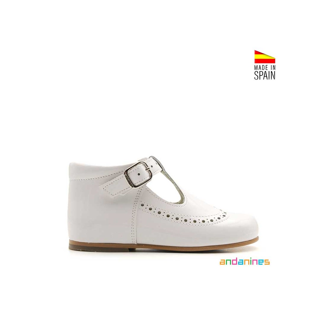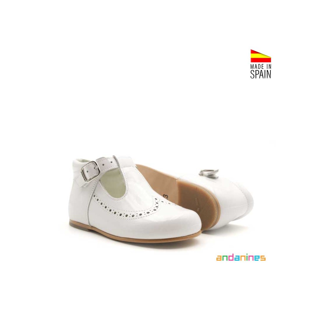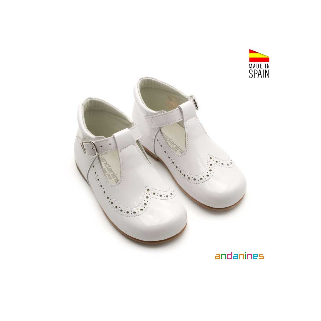 Zapatos Pepitos Charol en color blanco con un diseño clásico que nunca pasa de moda.