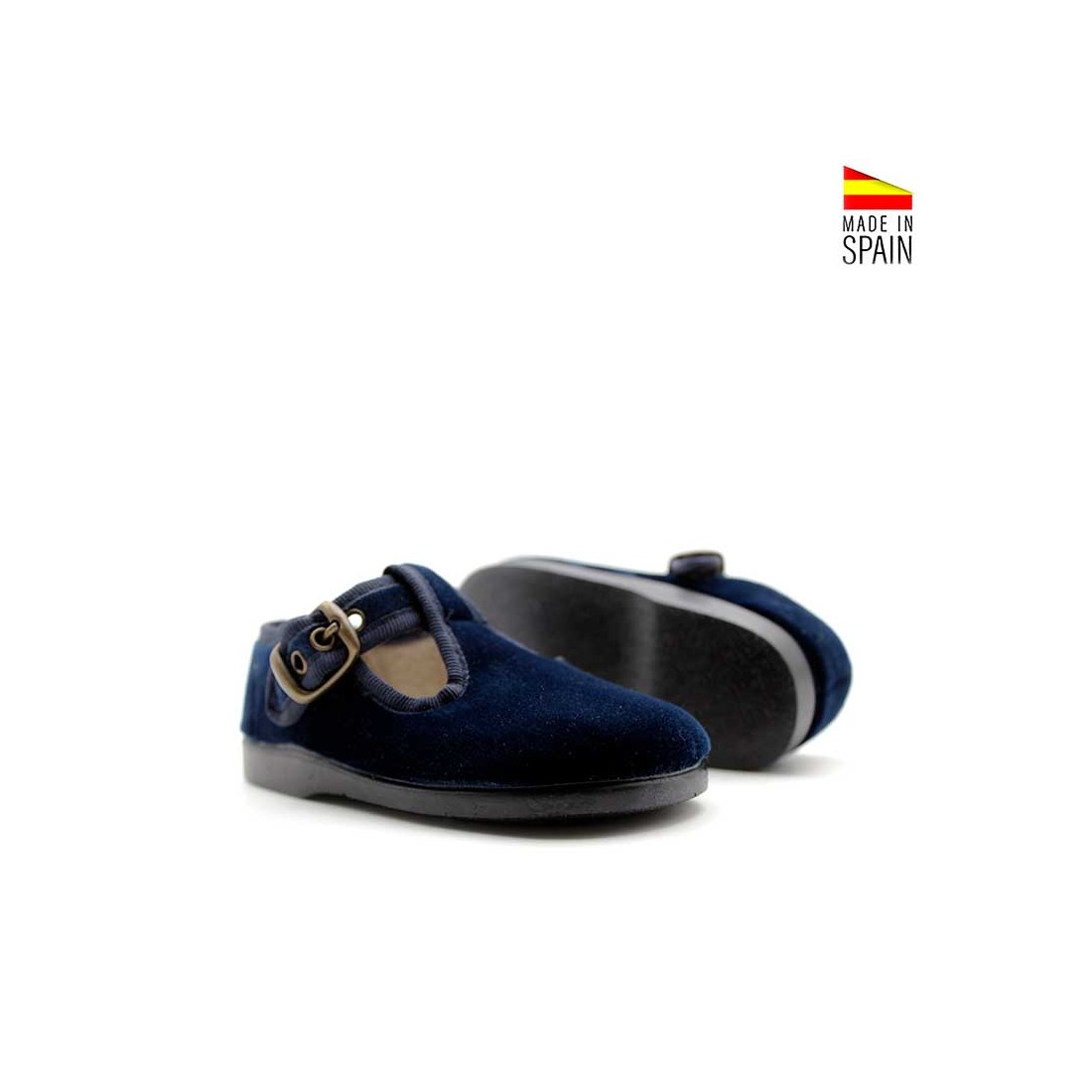 Suavidad, ligereza y un estilo clásico que nunca falla. Este pepito de terciopelo azul marino, fabricado en España, está diseñado para acompañar a los más pequeños con comodidad y seguridad en cada paso.