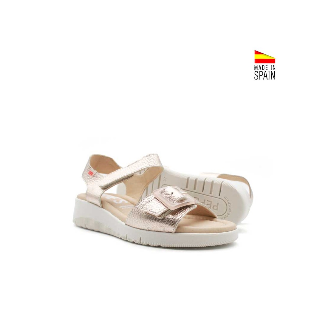 El diseño incorpora cierre de velcro en el tobillo, que facilita el calce y mejora la sujeción, junto con hebilla en la tira del empeine para ajustar la sandalia al ancho del pie de forma precisa.