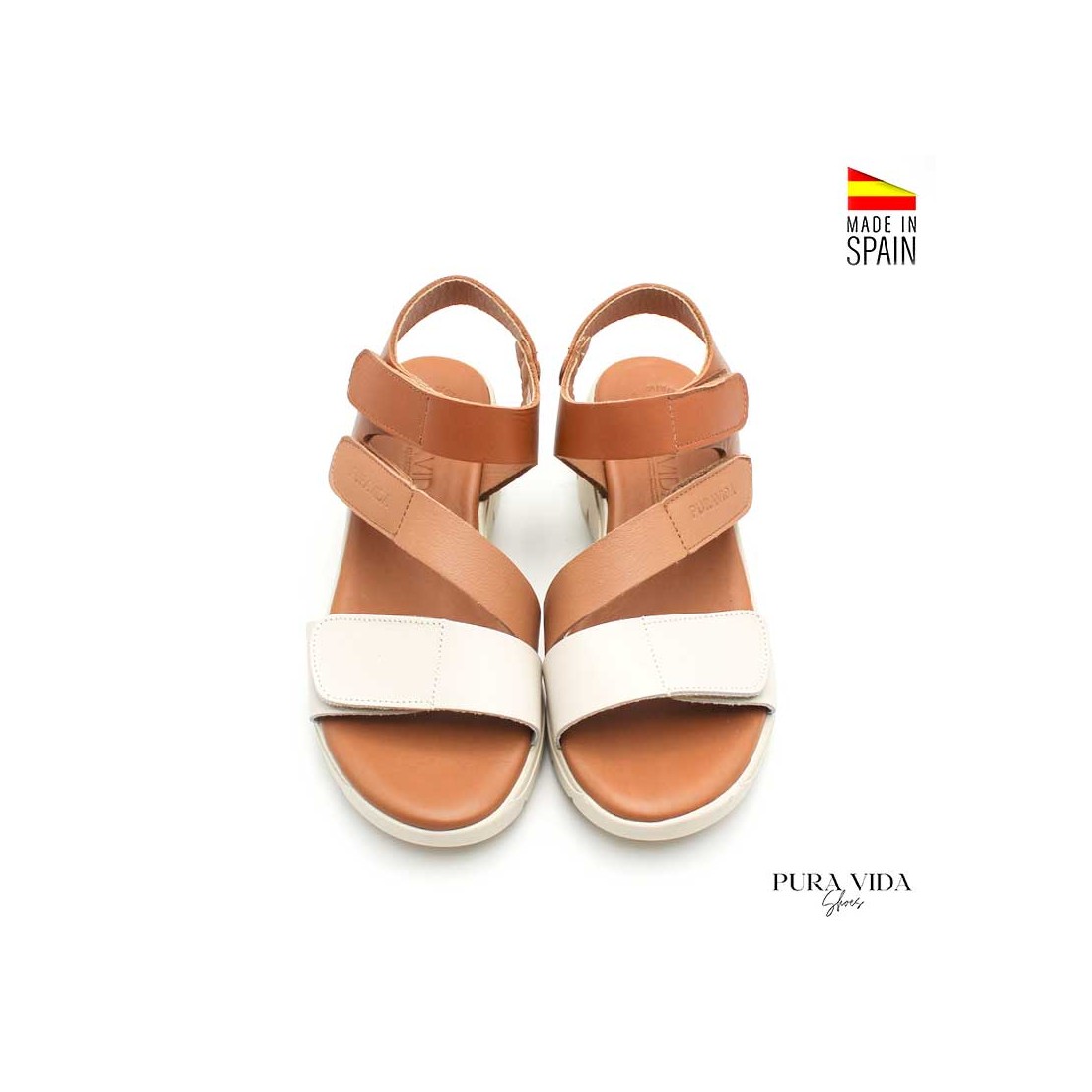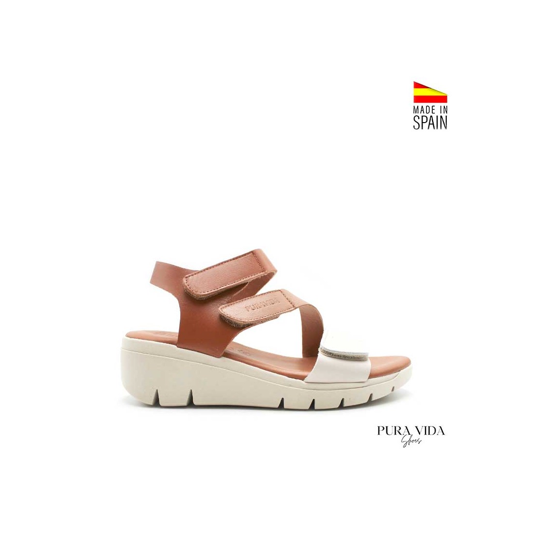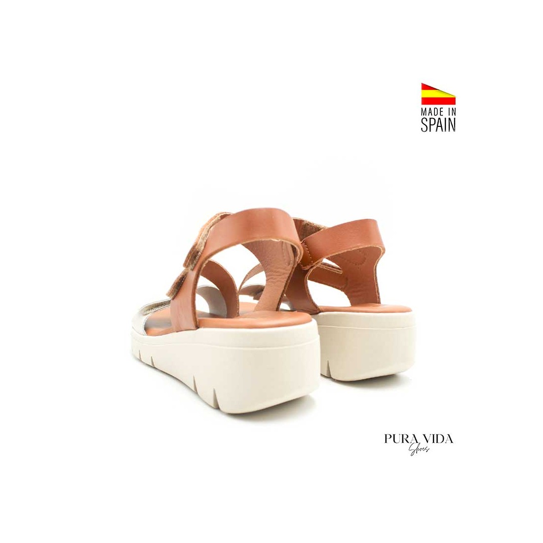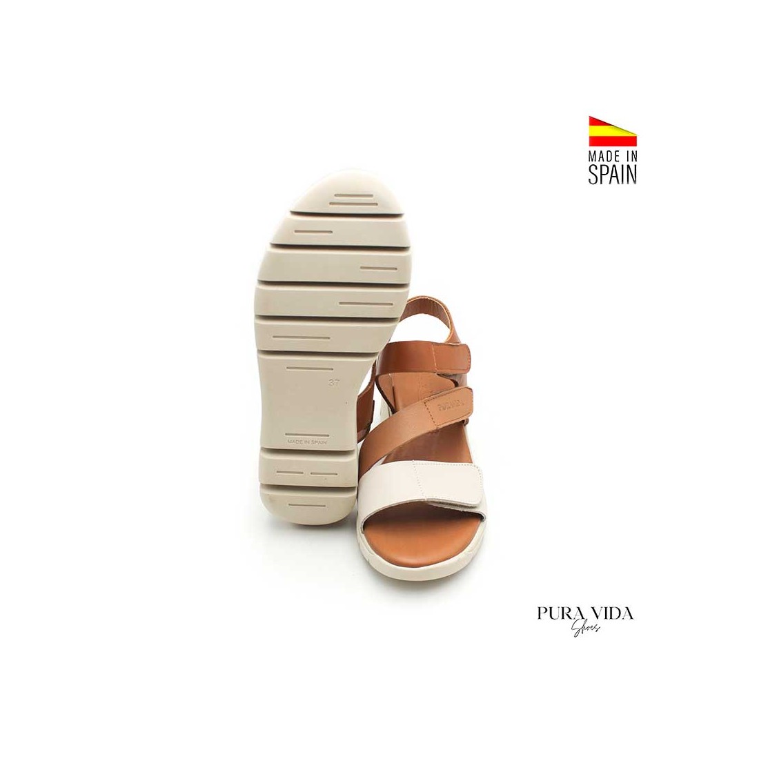 El diseño de tiras con doble ajuste en empeine y cierre trasero con velcro permite adaptar la sandalia al pie con facilidad, ofreciendo una sujeción firme sin renunciar a la comodidad.