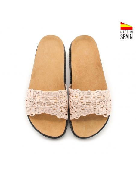 Diseño estilo boho con pala de cuerda rafia, con un original dibujo de flores que le da ese toque único y especial. Disponible en variedad de colores -blanco, rosa, beige y negro.