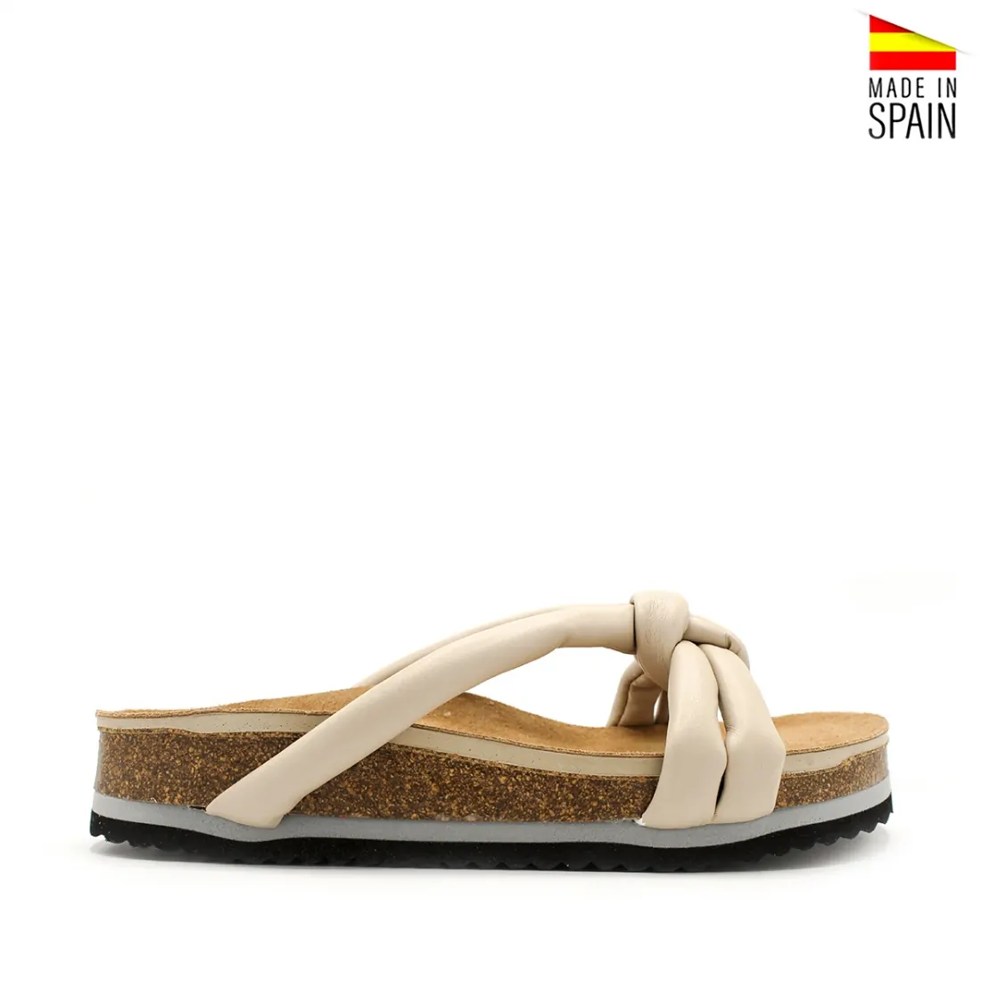 Nuestras sandalias destalonadas de mujer con un nudo único en el empeine. Este diseño, que juega con tiras tubulares en un tono beige neutral, aporta un toque de elegancia desenfadada a tus looks diarios, haciéndolas ideales tanto para un día en la oficina como para una salida casual por la tarde.