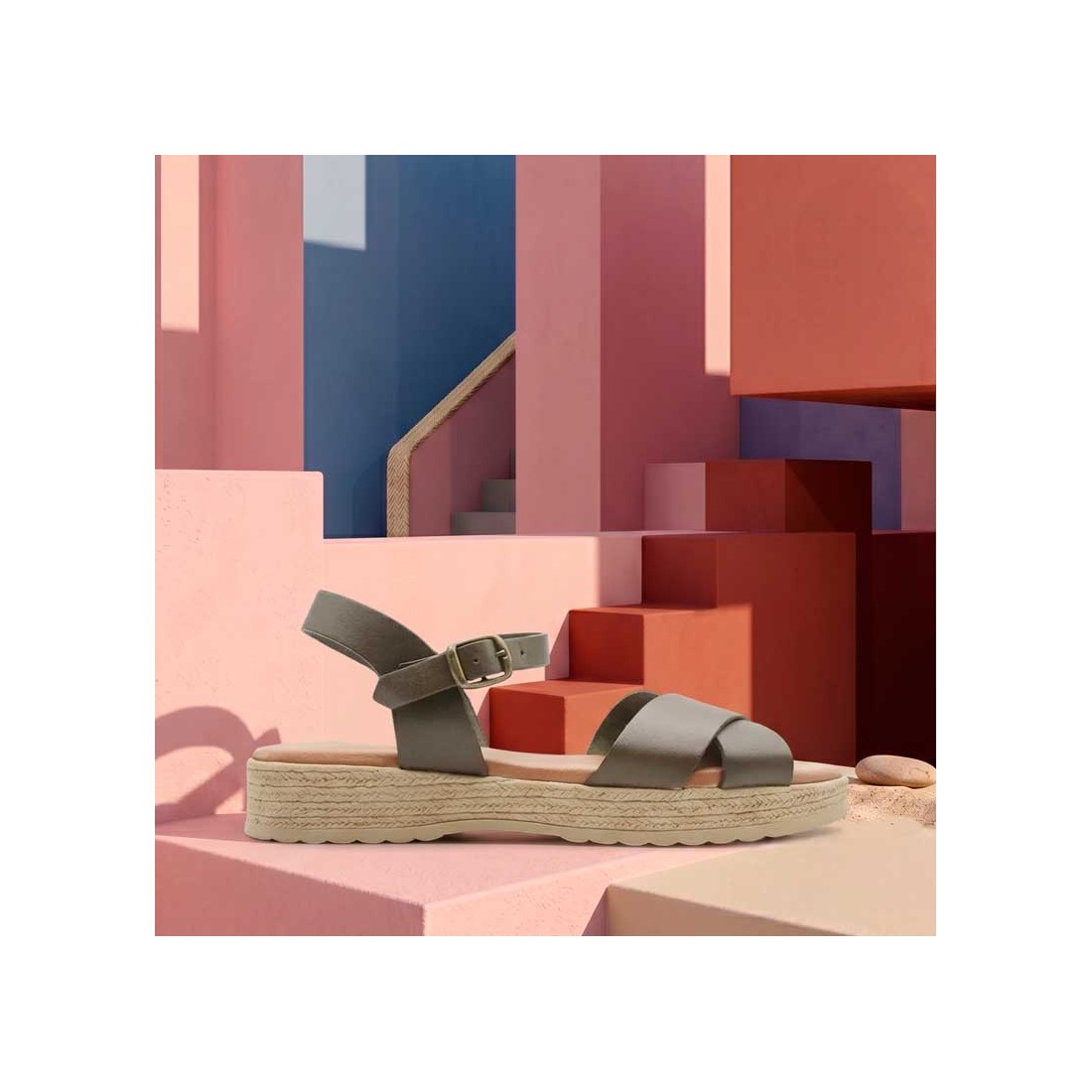 Su diseño con tiras cruzadas al empeine y pulsera con cierre de hebilla al talón asegura una sujeción cómoda y segura durante todo el día.